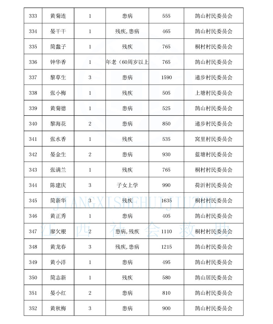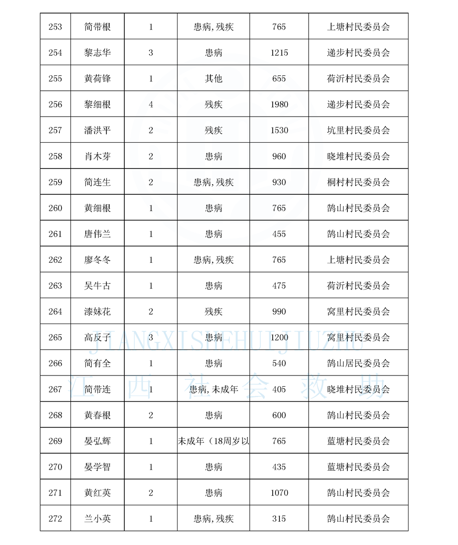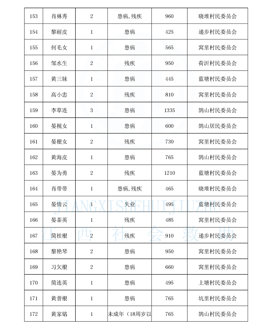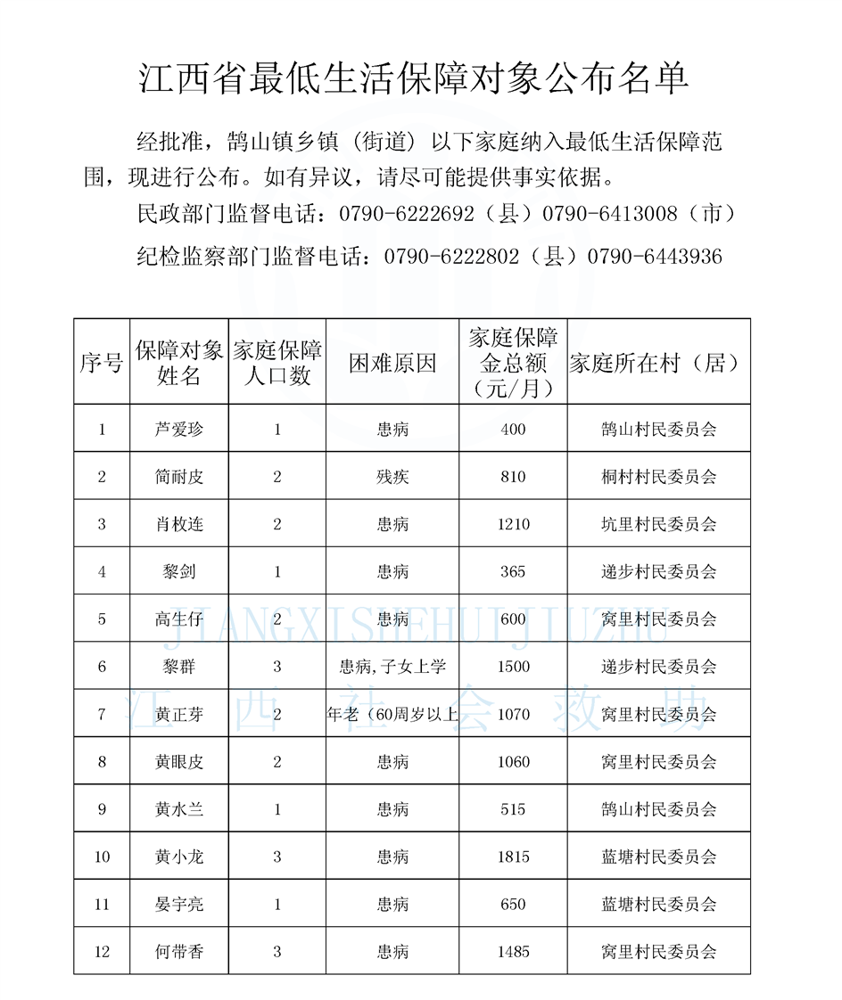 鵠山鎮2026年1月最低生活保障對象公布名單