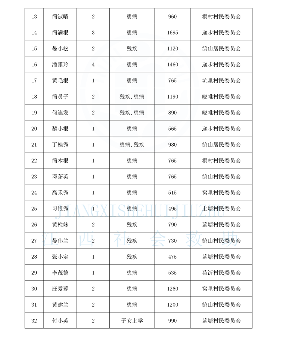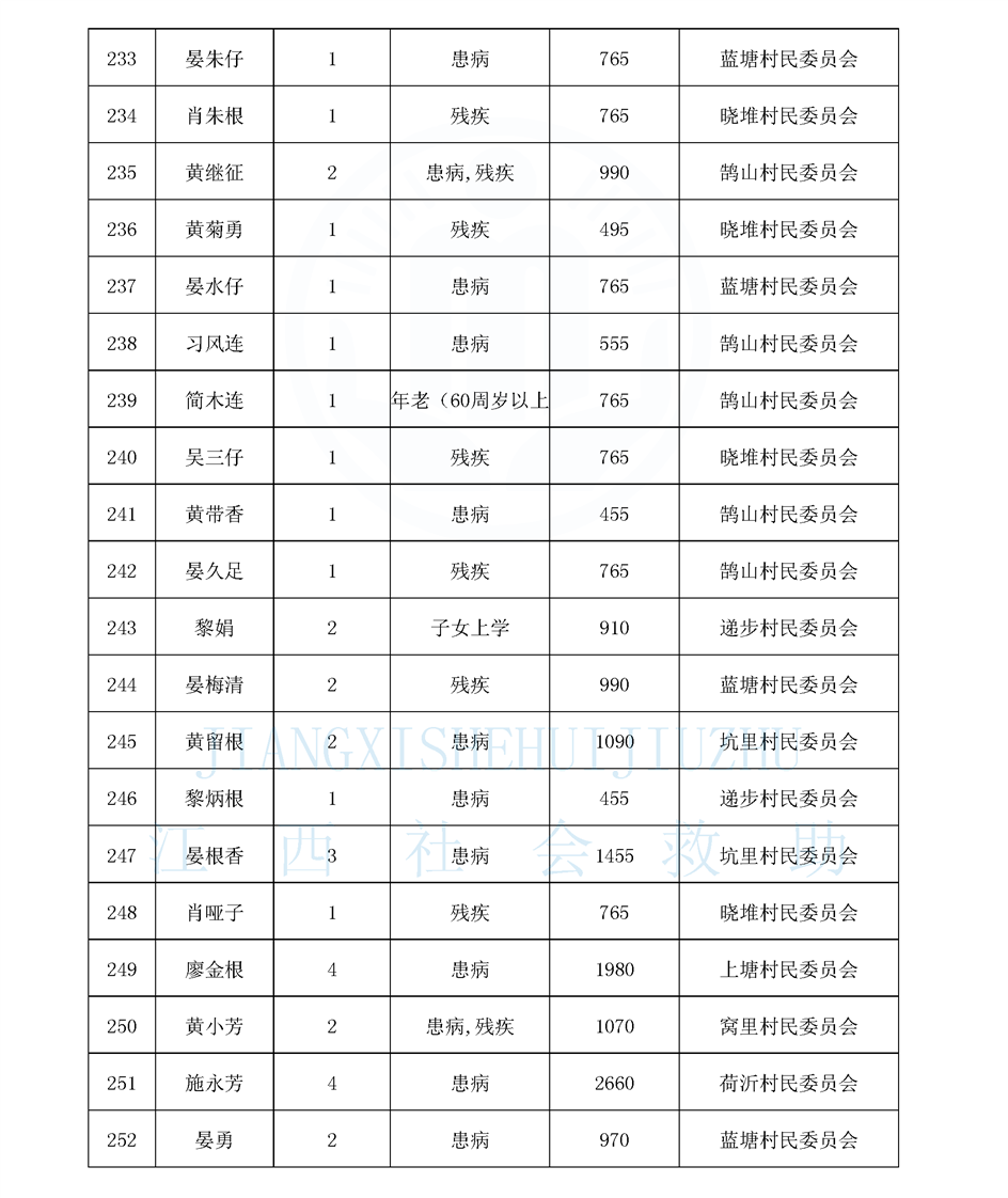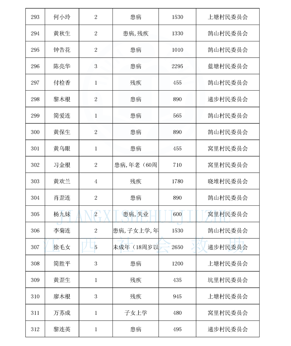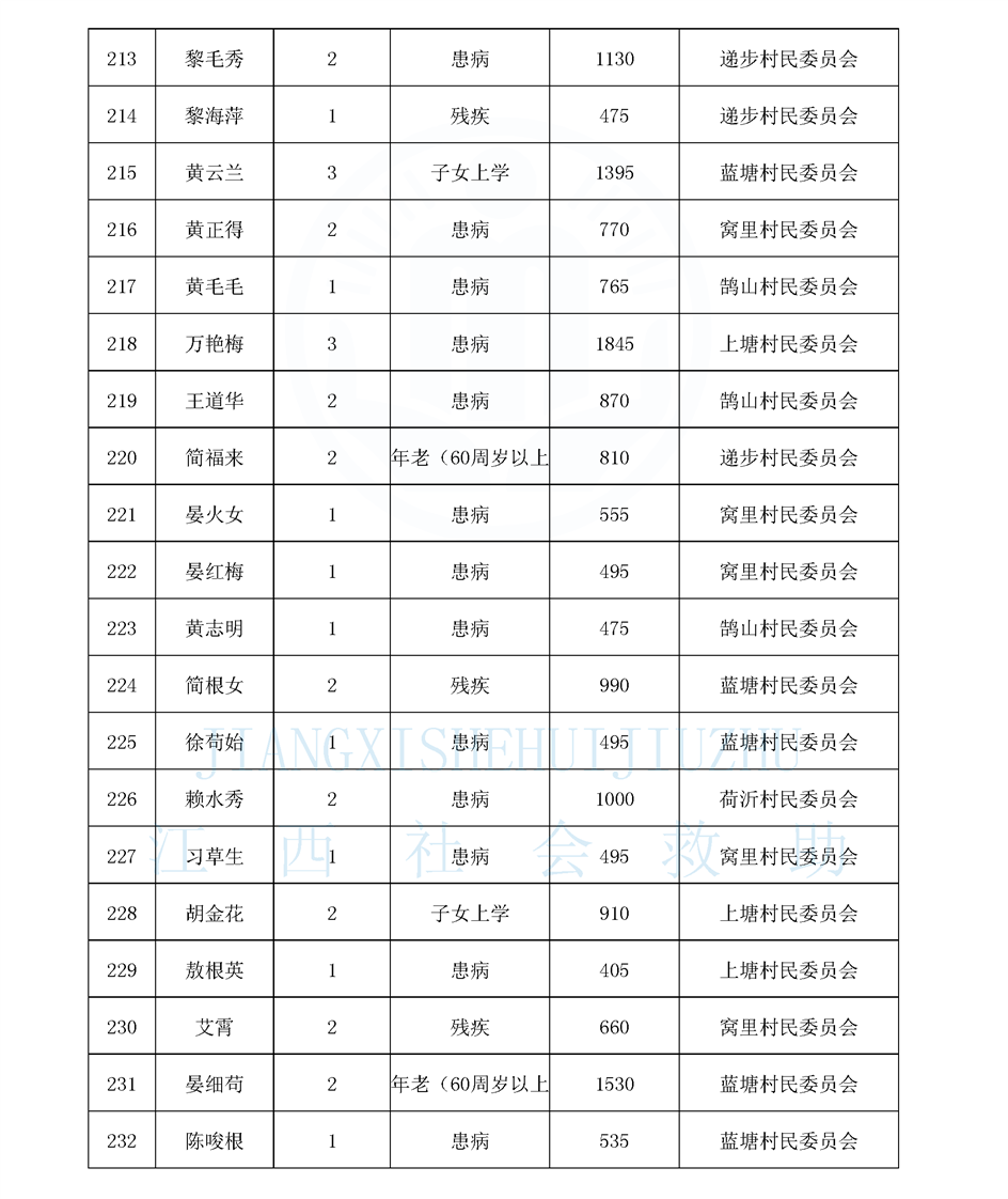 鵠山鎮2026年1月最低生活保障對象公布名單