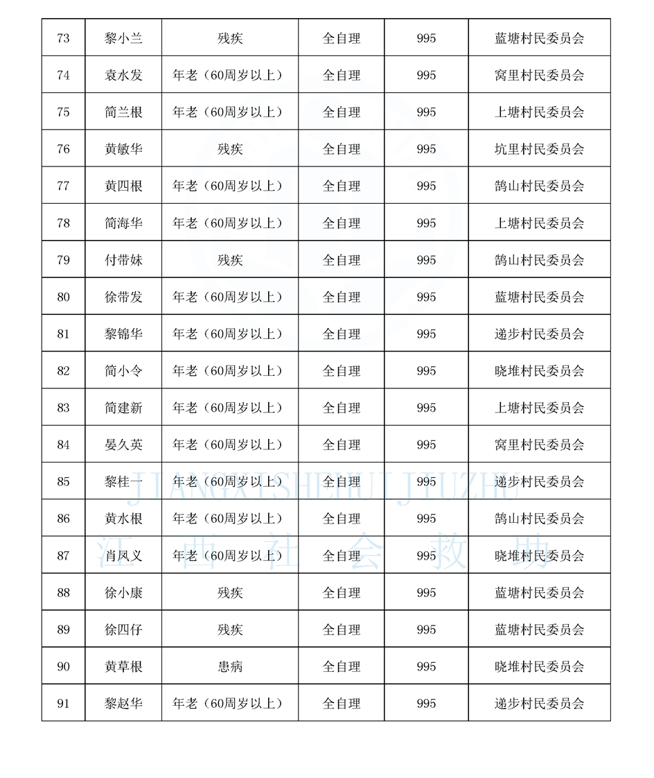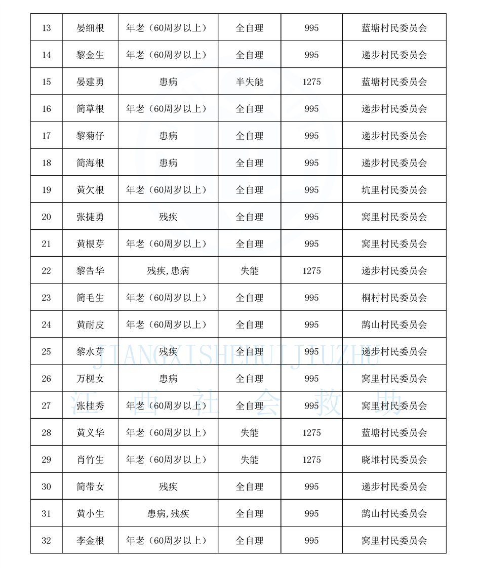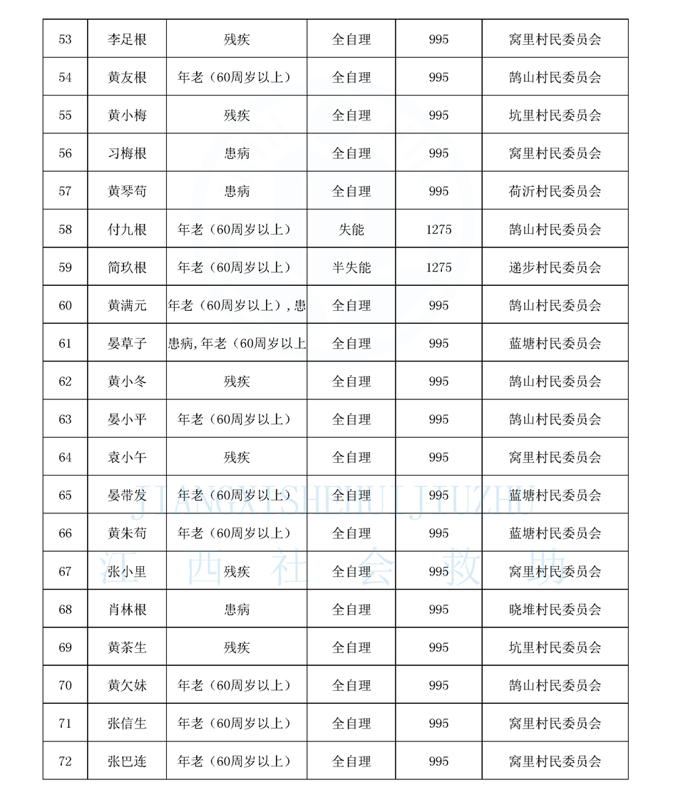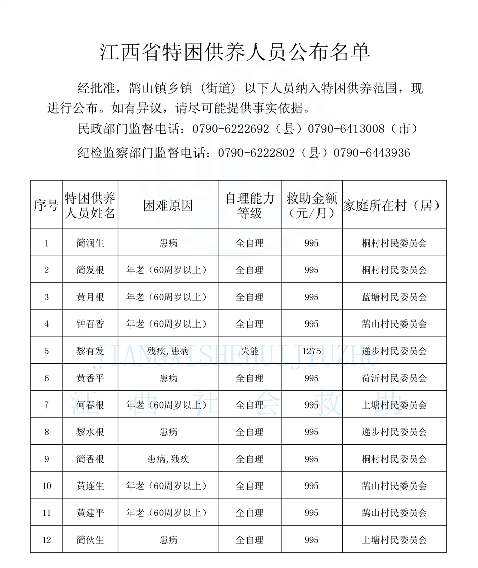 鵠山鎮2026年1月特困供養人員公布名單