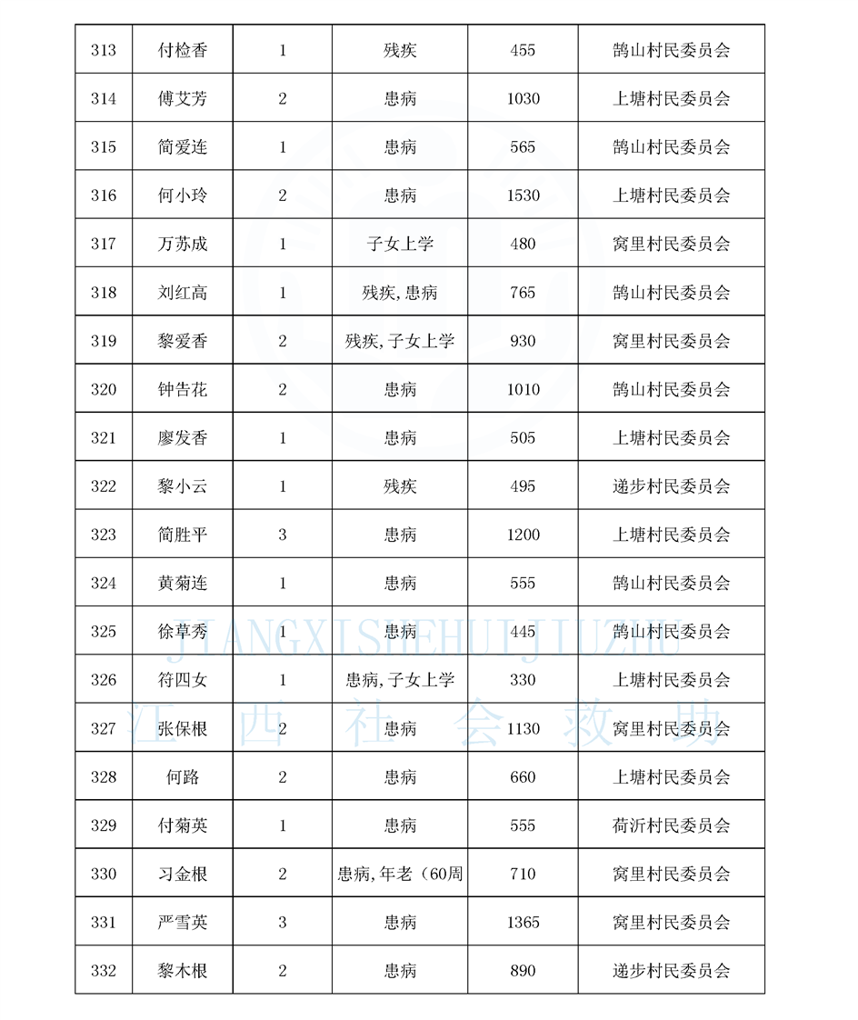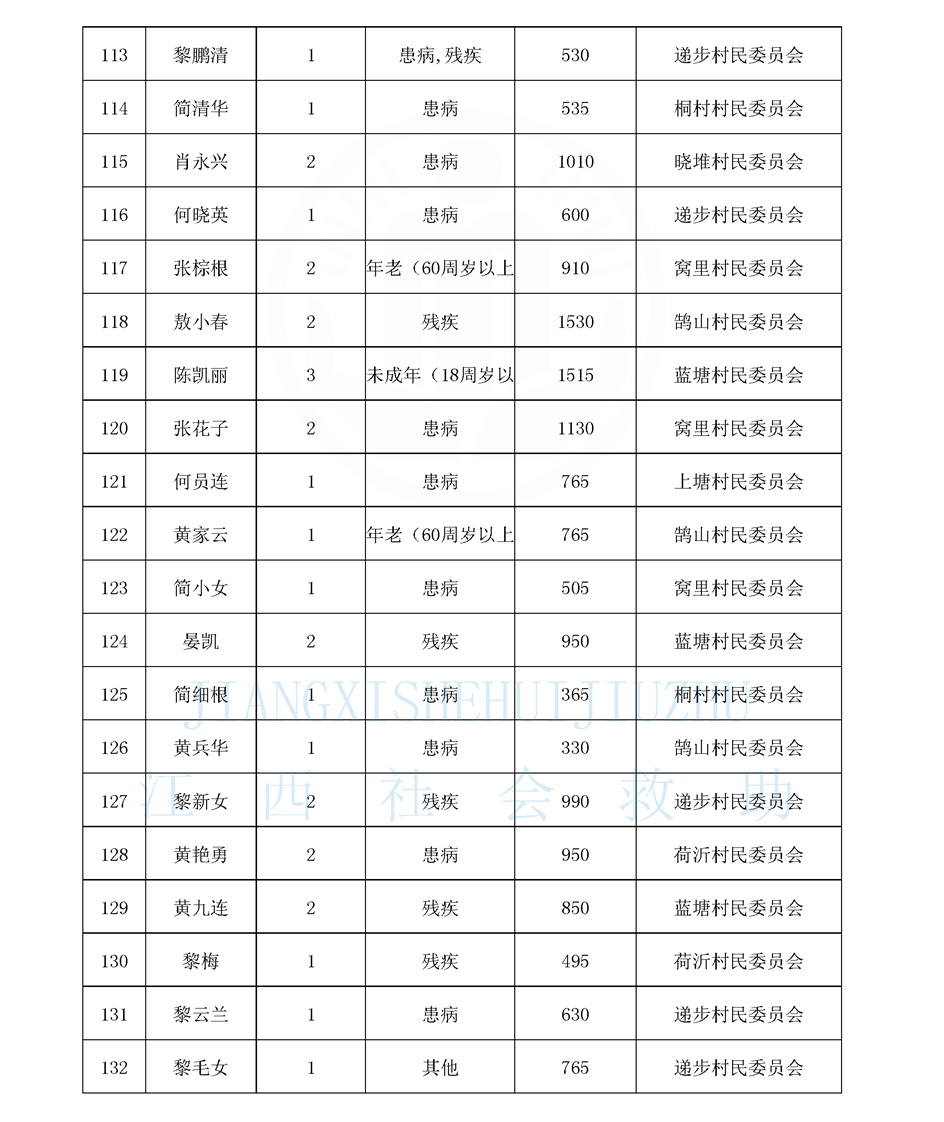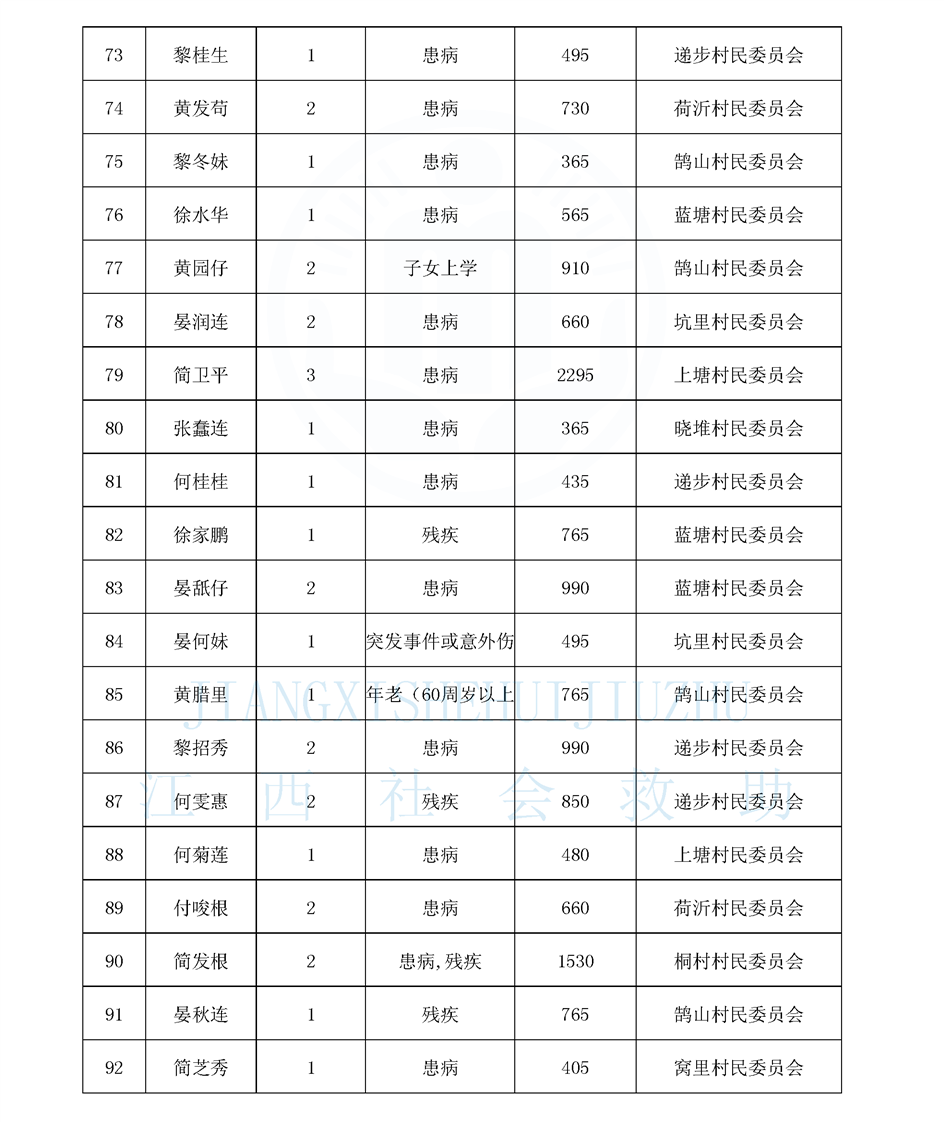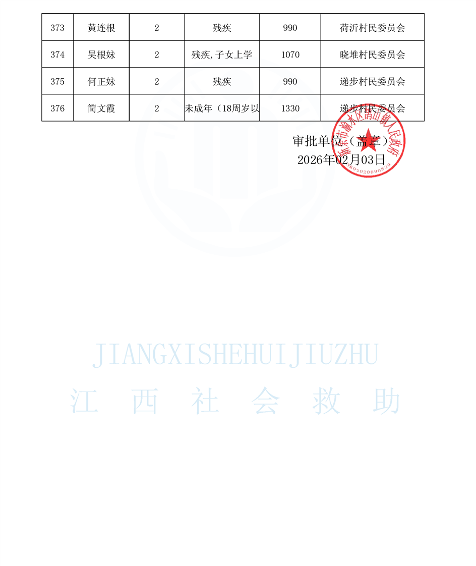 鵠山鎮2026年2月最低生活保障對象公布名單