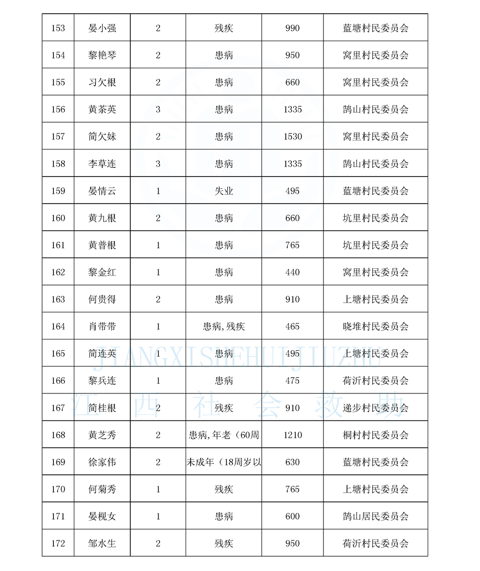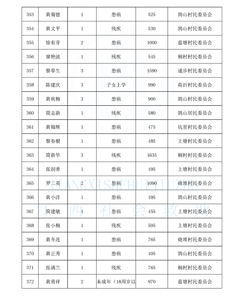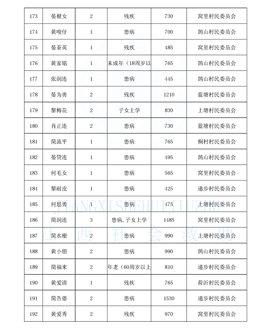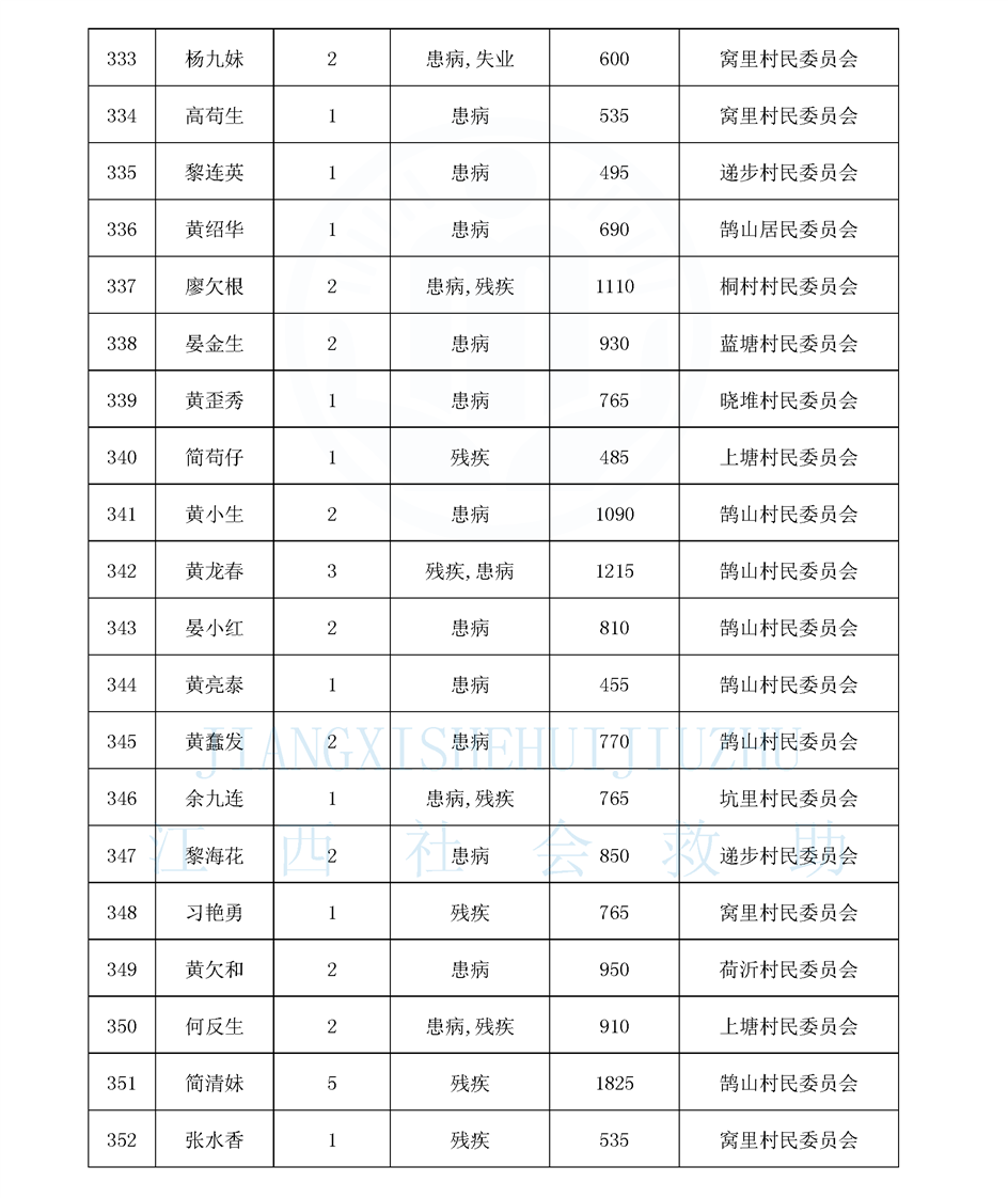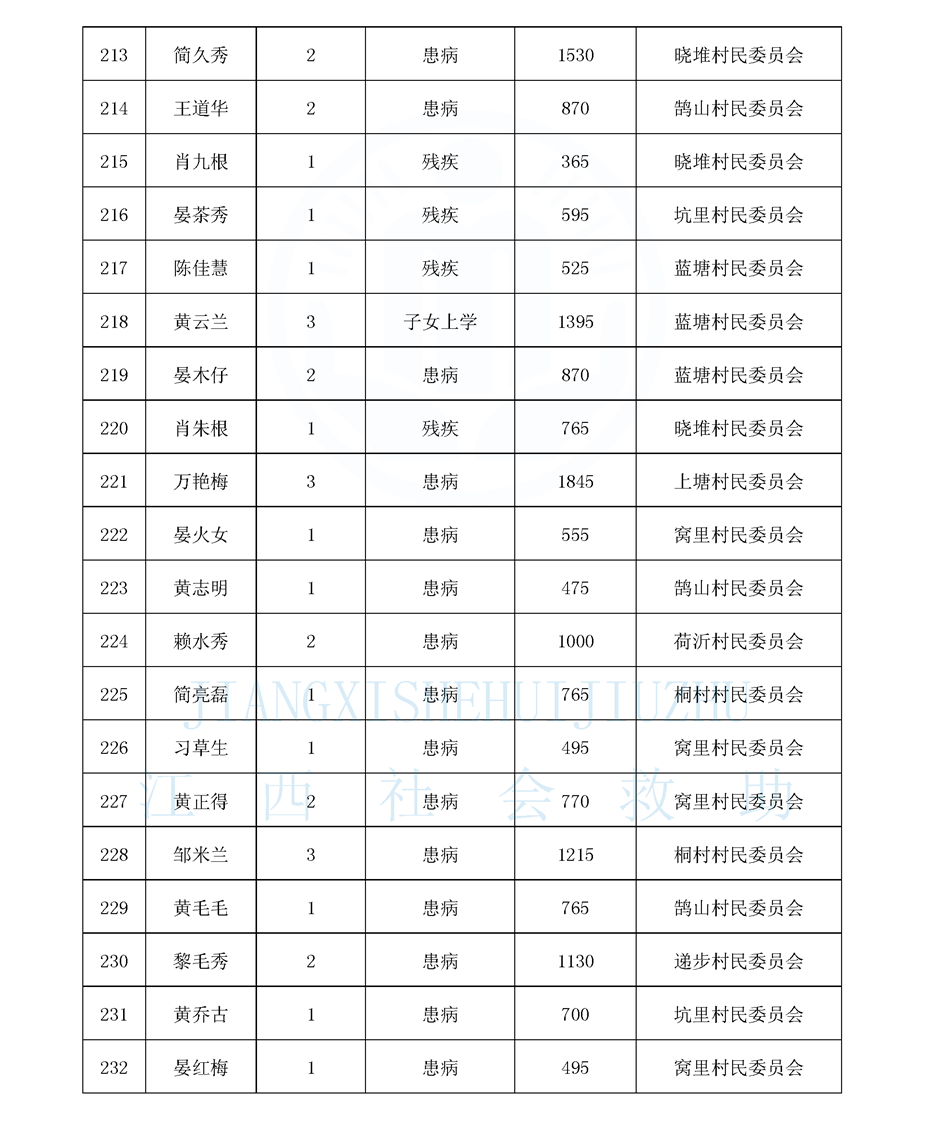 鵠山鎮2026年2月最低生活保障對象公布名單