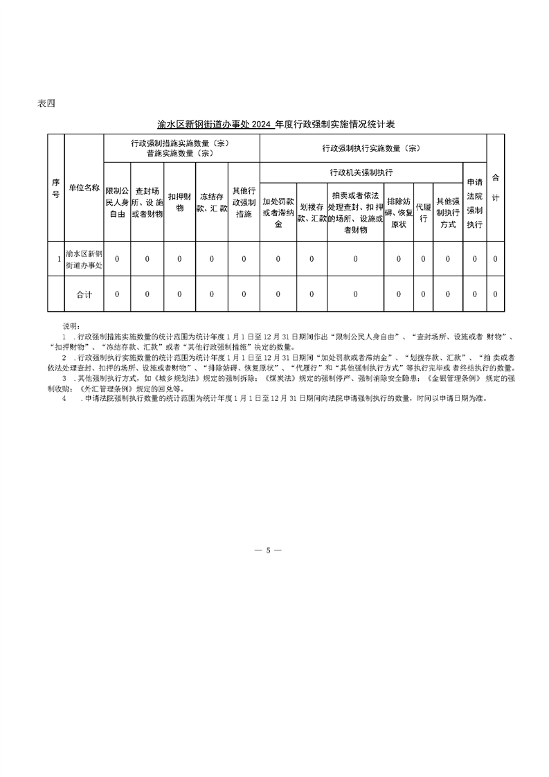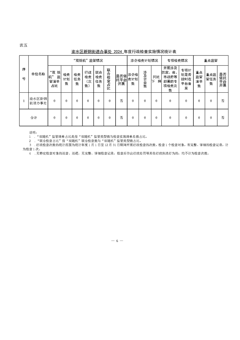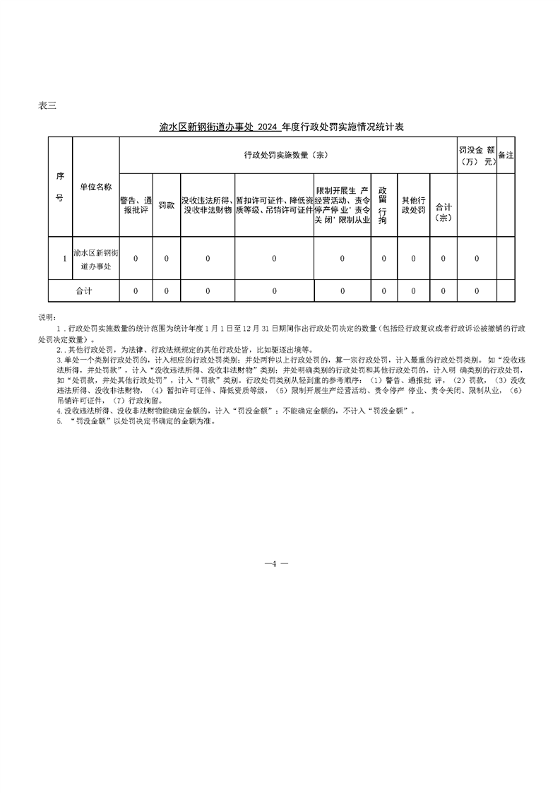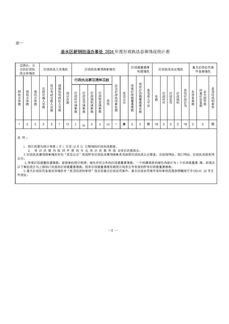 渝水區新鋼街道辦事處2024年度行政執法數據年報