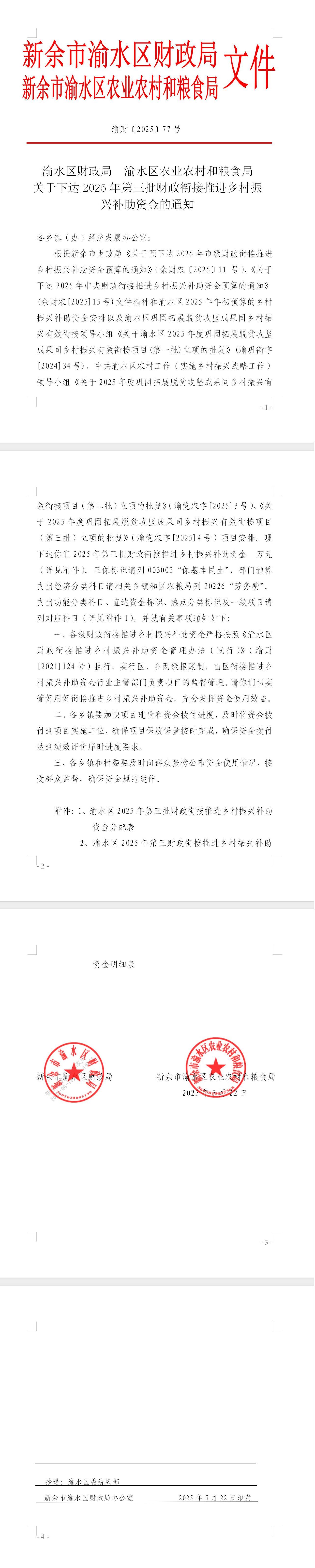 附件1:渝水區2025年第三批銜接推進鄉村振興補助資金分配表
