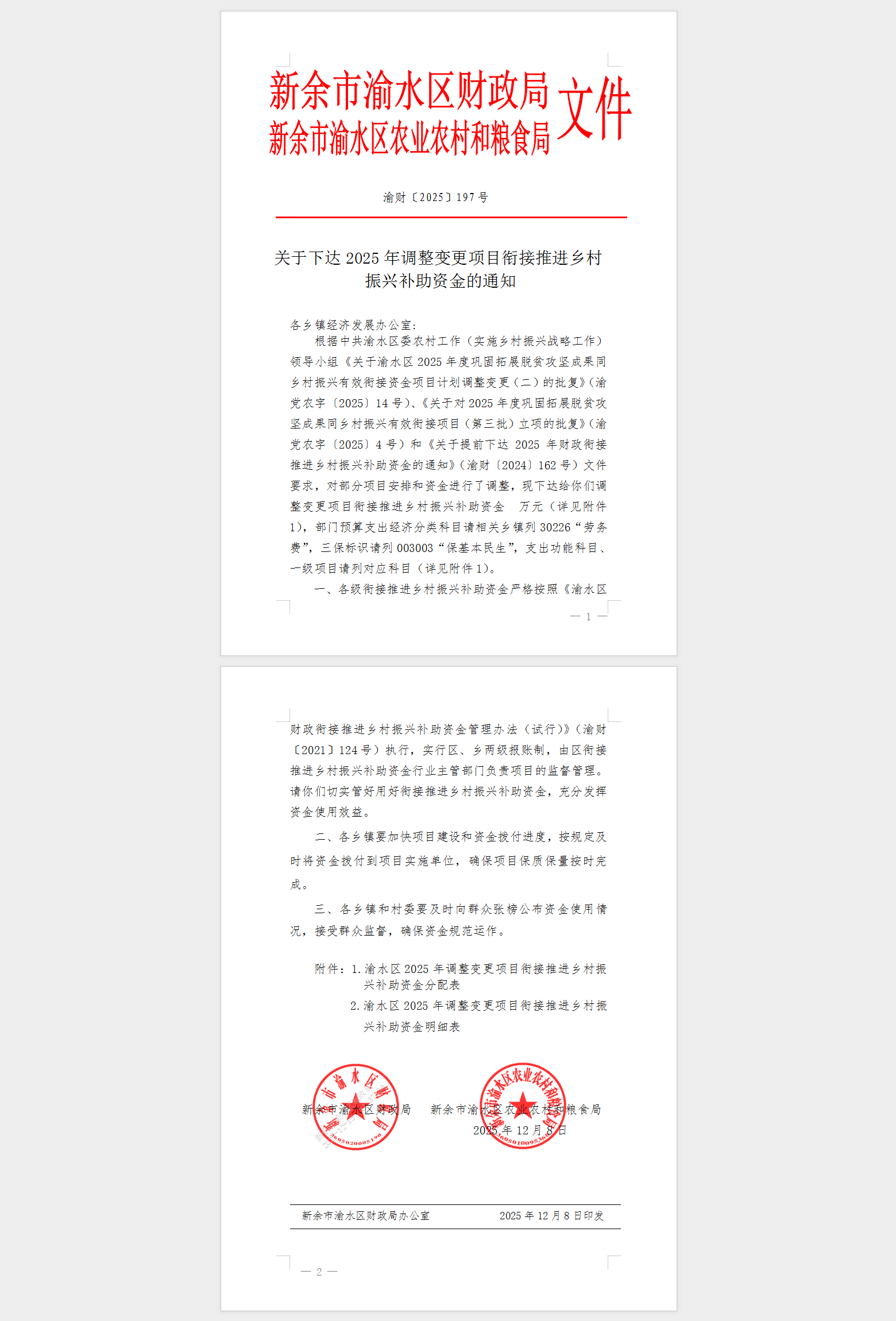 附件1:渝水區(qū)2025年調(diào)整變更項(xiàng)目銜接推進(jìn)鄉(xiāng)村振興補(bǔ)助資金分配表(1)附件2:渝水區(qū)2025年調(diào)整變更項(xiàng)目銜接推進(jìn)鄉(xiāng)村振興補(bǔ)助資金明細(xì)表(1)