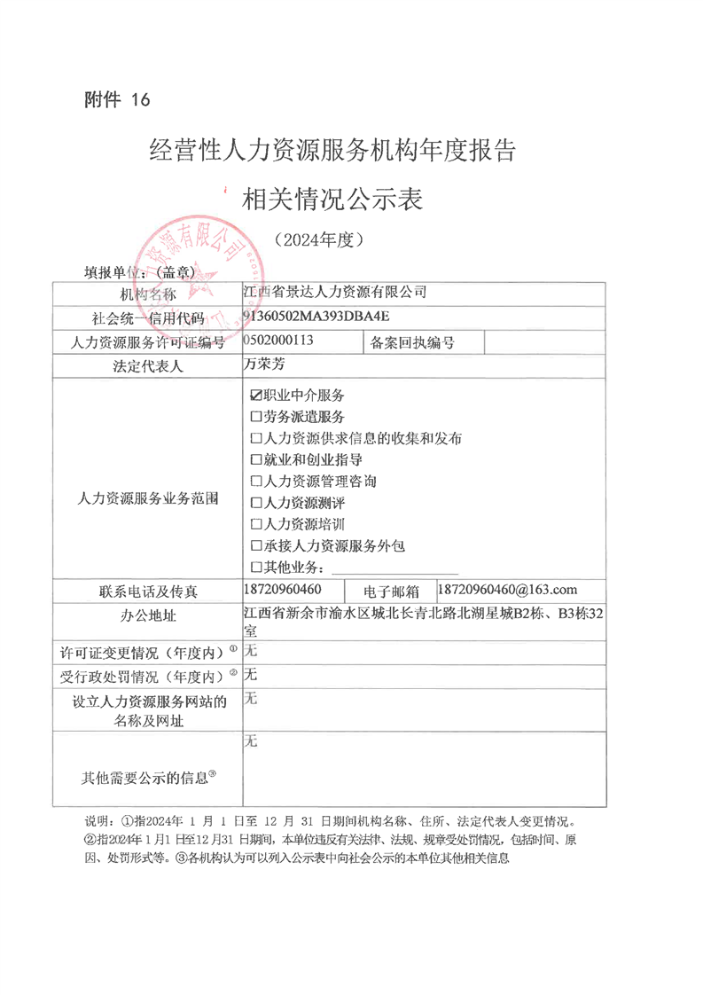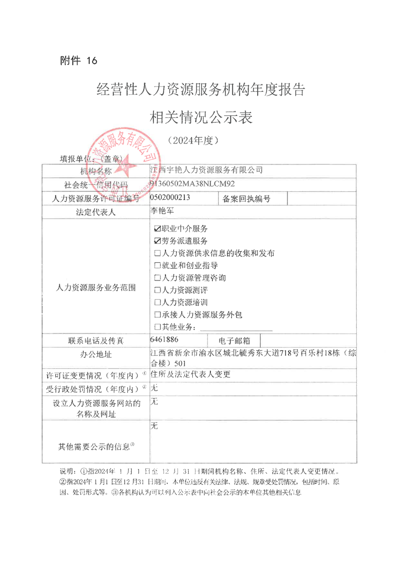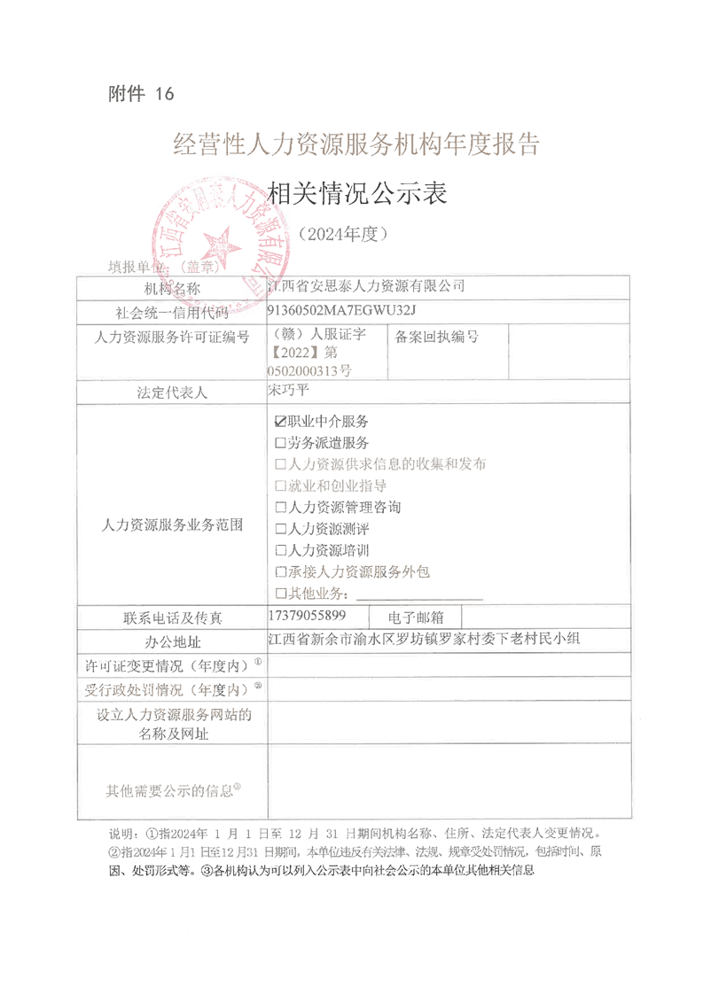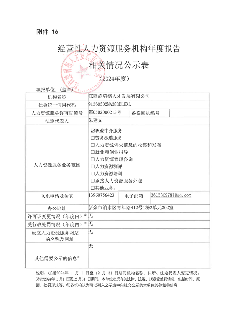 渝水區人力資源和社會保障局關于人力資源服務機構2024年度報告的公示
