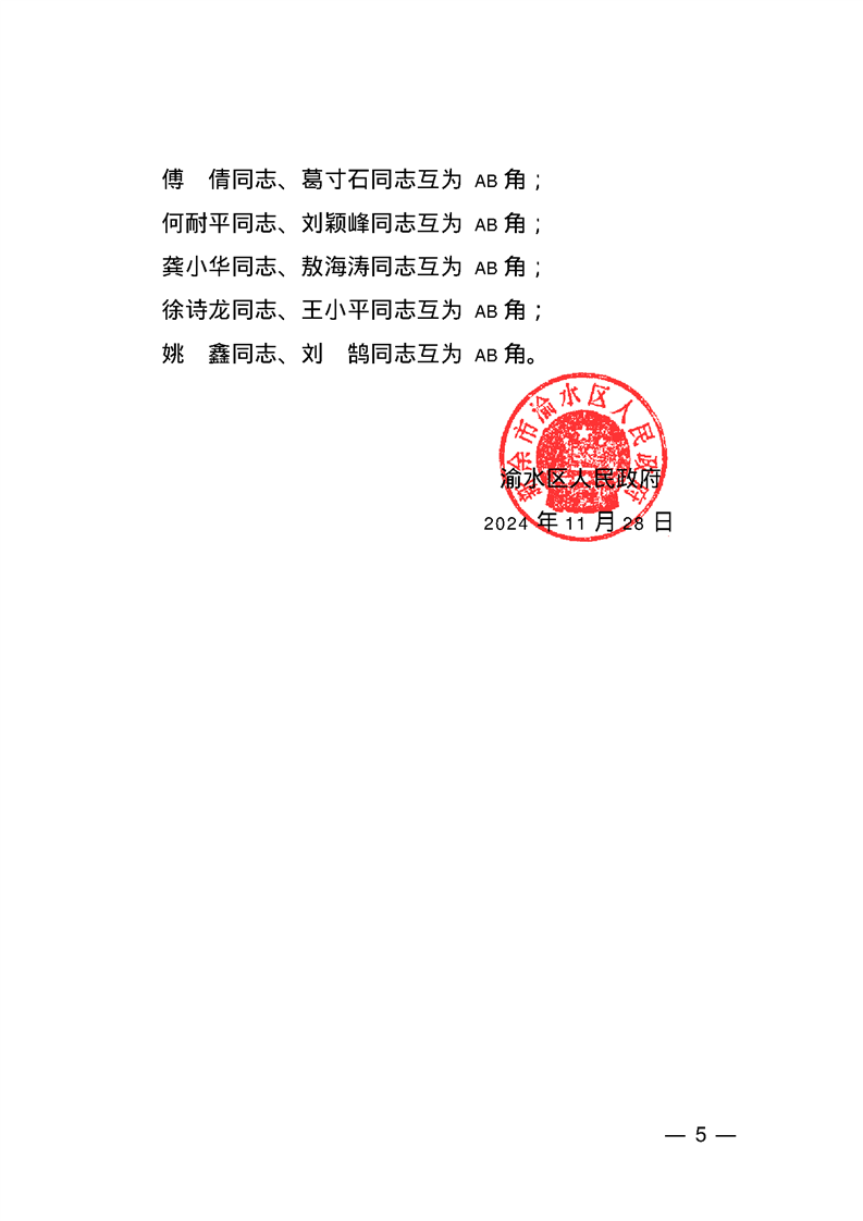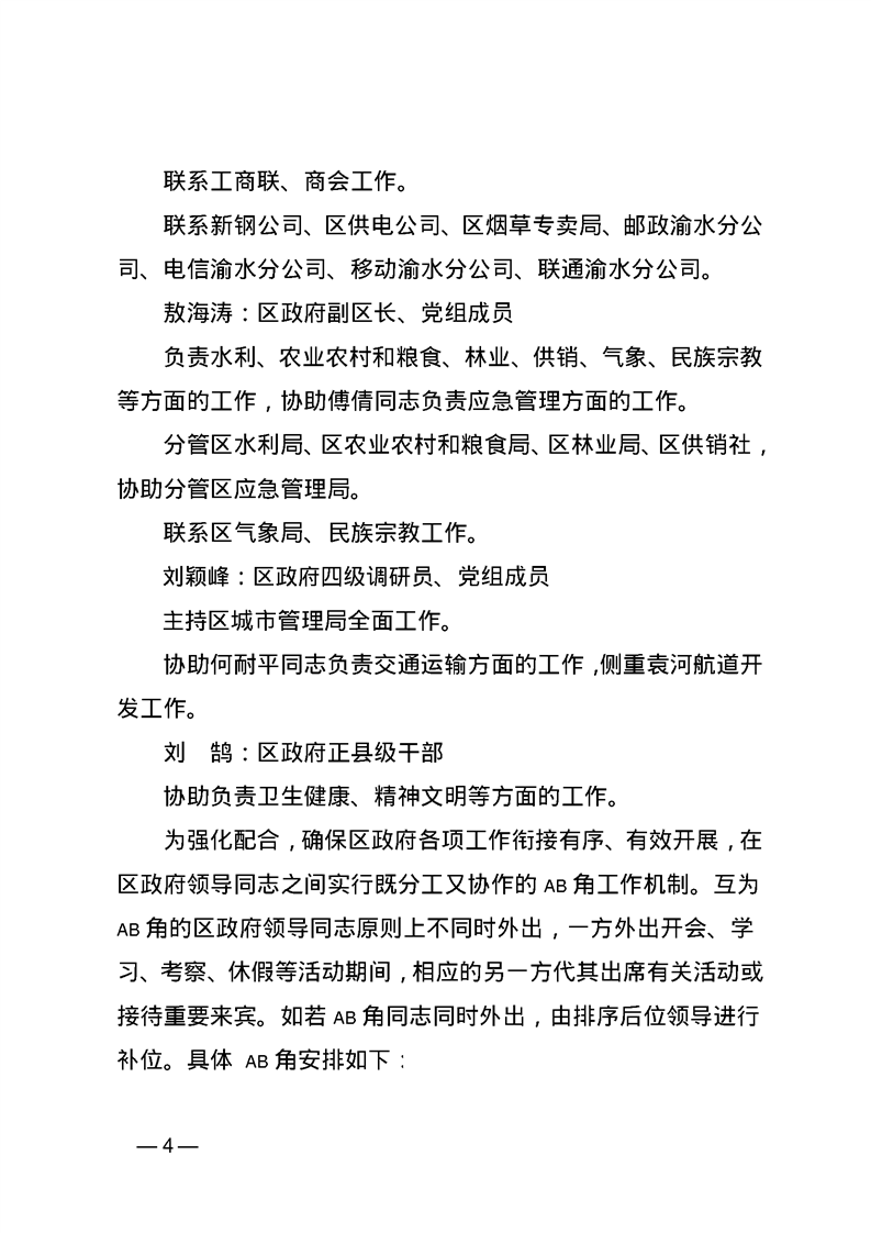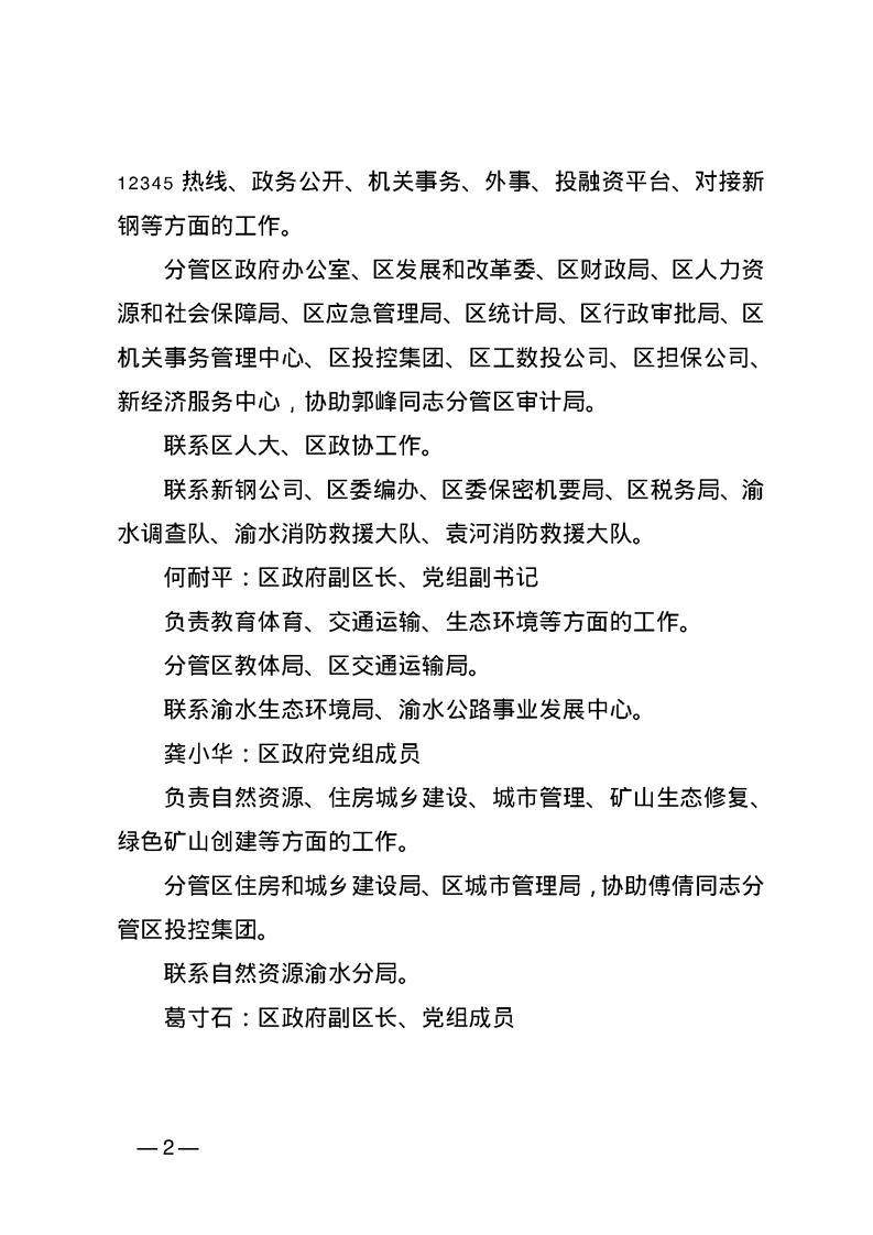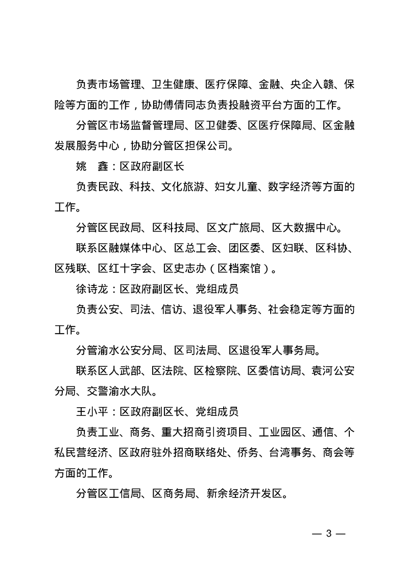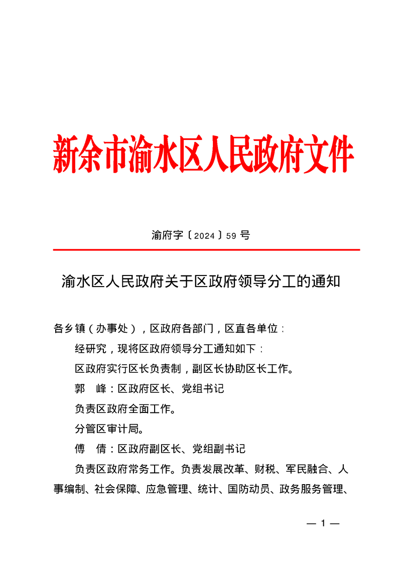 渝府字【2024】59號 渝水區(qū)人民政府關(guān)于區(qū)政府領(lǐng)導(dǎo)分工的通知