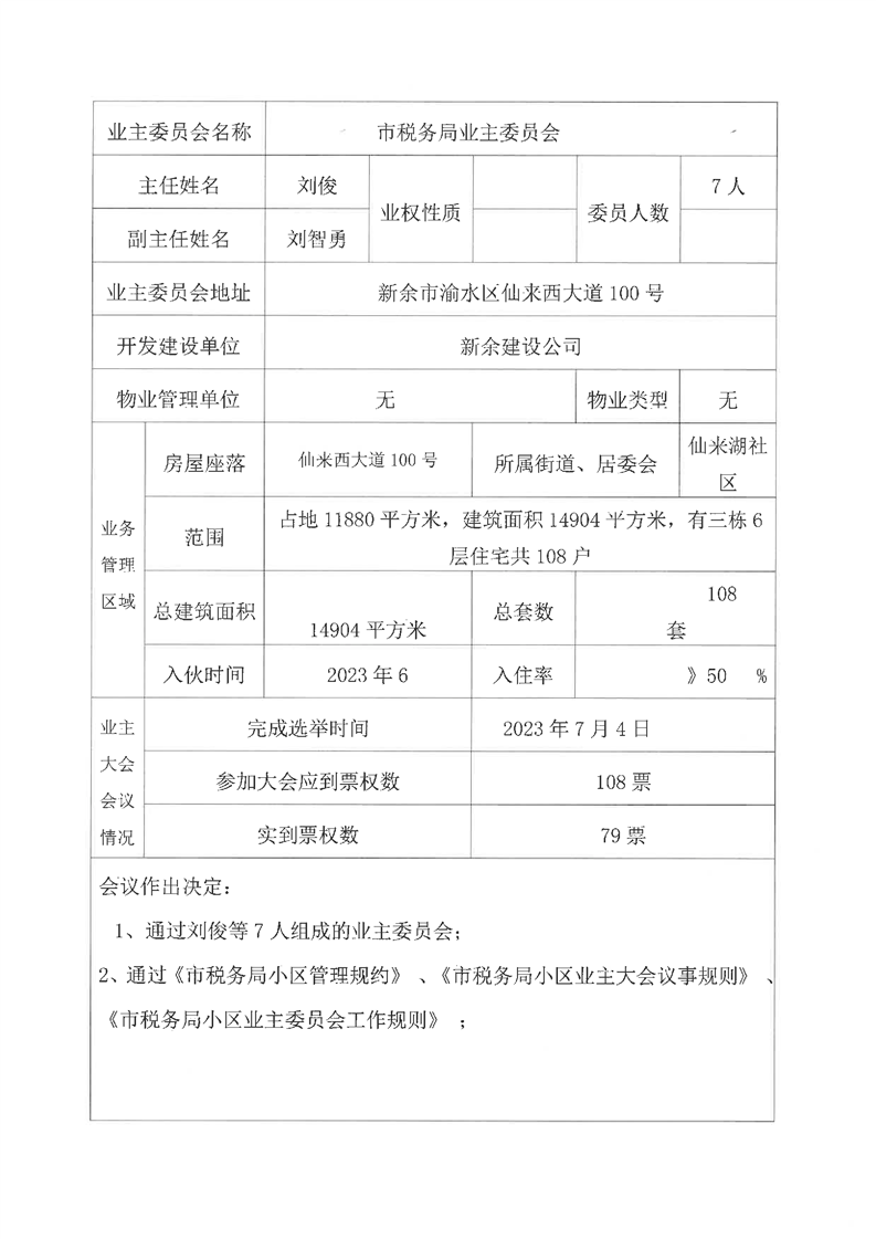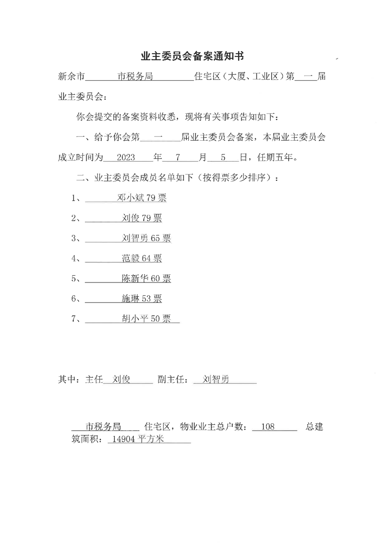 市稅務(wù)局小區(qū)業(yè)主委員會(huì)成立備案申請(qǐng)