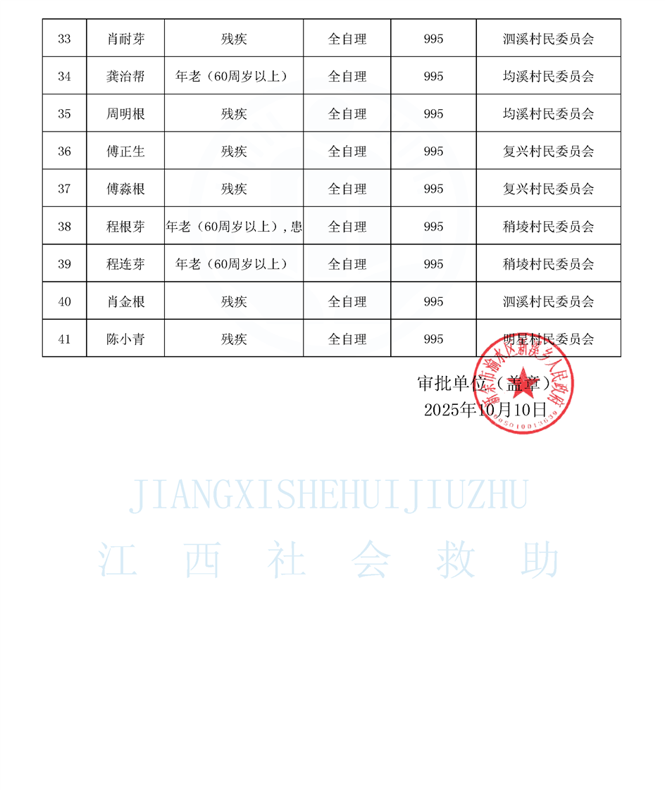 新溪鄉城鄉特困供養公布名單(10.10)