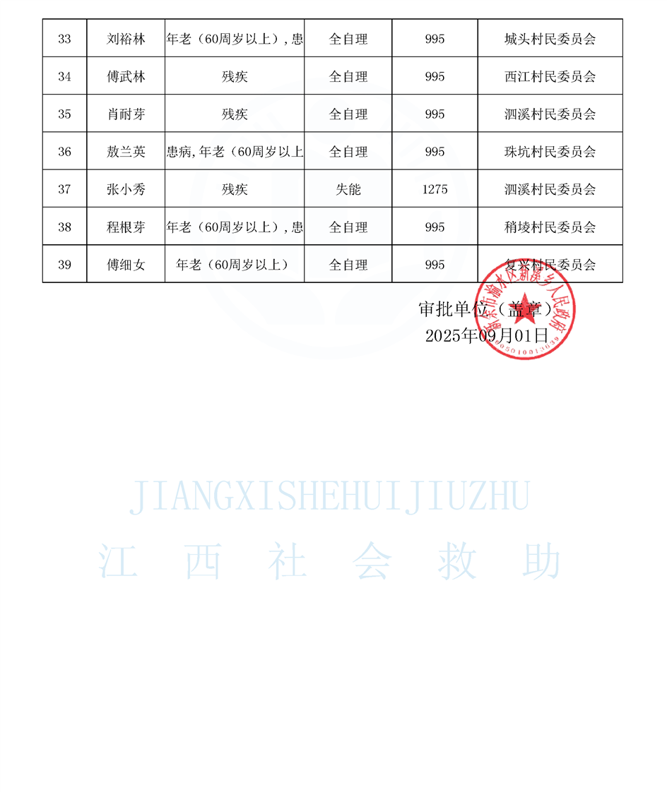 新溪鄉特困供養公布名單(9.1)