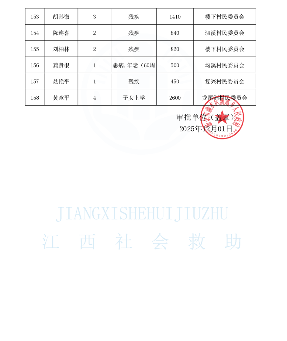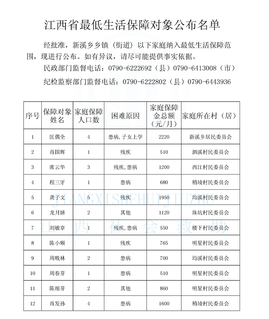 新溪鄉城鄉低保公示名單(12.1)