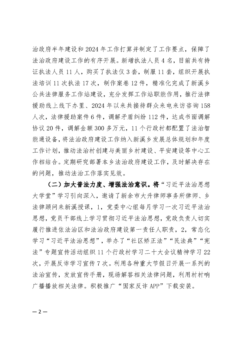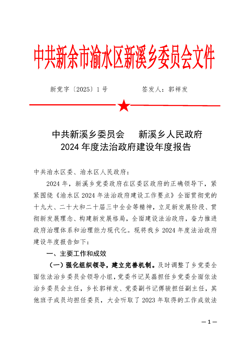 新黨字1號 新溪鄉2024年度法治政府建設年度報告