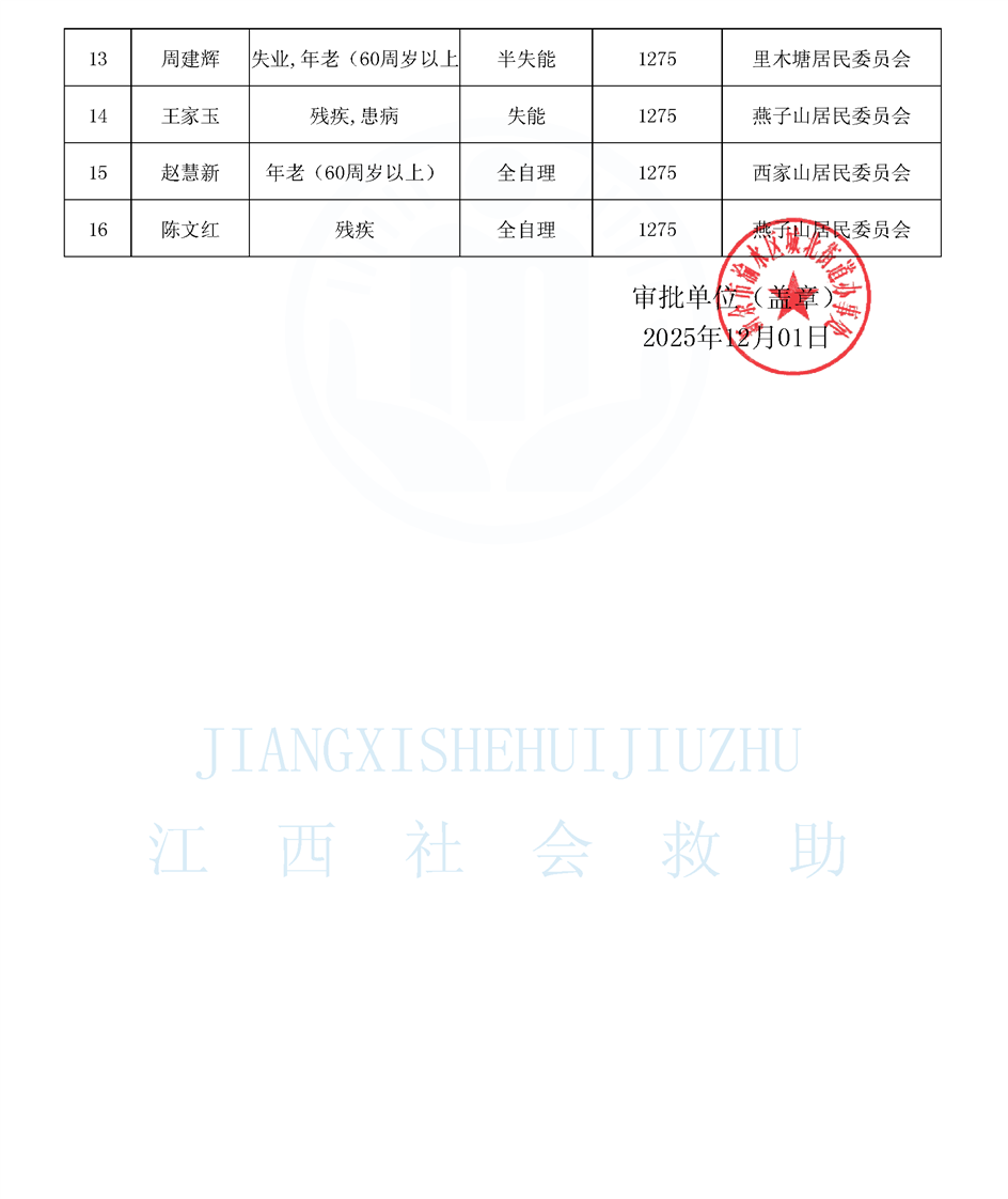 【城北街道】江西省特困供養人員公布名單 12月