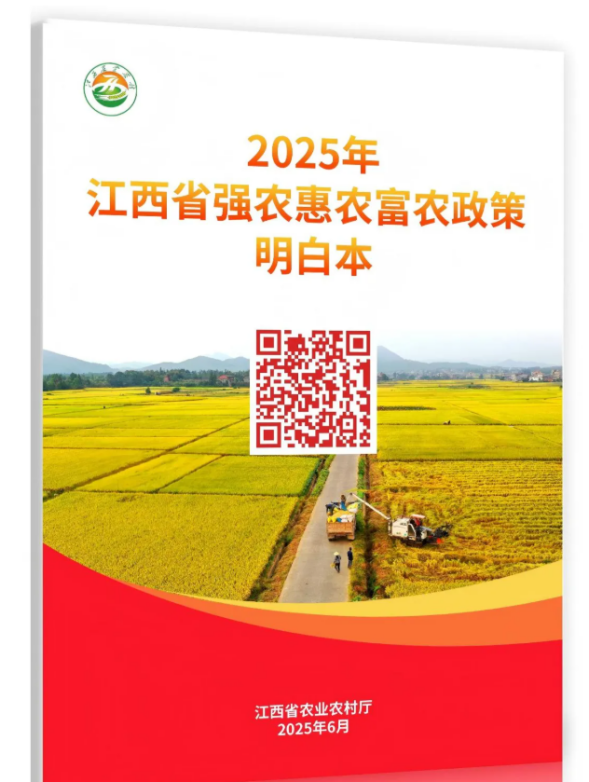 為全面推進強農惠農富農政策公開公示,提高政策知曉度和透明度,有效保障農民群眾知情權和監督權,省農業農村廳組織編寫了《2025年江西省強農惠農富農政策明白本》(以下簡稱《明白本》),匯總梳理了補貼類項目、新型農業經營主體及體系、產業發展項目、農業綠色發展項目、鄉村建設行動項目、農業支持保護政策、財政銜接推進鄉村振興補助資金等7部分共41項惠農資金政策。《明白本》逐一列明政策依據、支持對象、支持內容、實施標準等信息,供廣大農民群眾、涉農經營主體,以及社會各界學習了解。同時,希望各市、縣(區)農業農村部門和鄉鎮等單位認真組織學習,更好貫徹落實強農惠農富農政策,充分發揮財政資金政策的引領帶動作用,為加快推進鄉村全面振興、建設農業強省提供有力支撐。