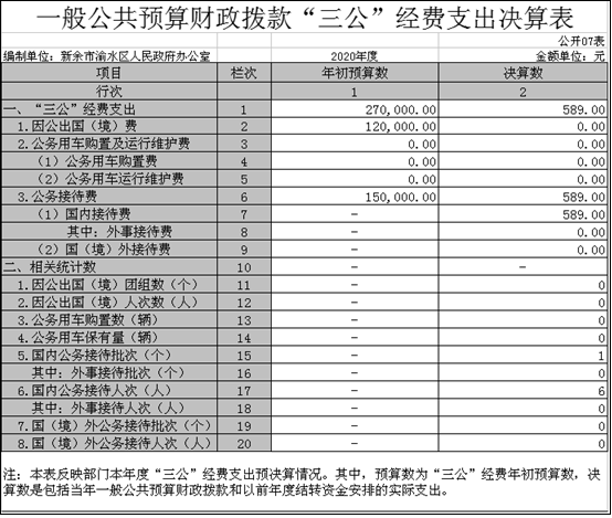 (九)“三公”經費:因公出國(境)費用反映單位公務出國(境)的國際旅費、國外城市間的交通費、住宿費、伙食費、培訓費、公雜費等支出;公務接待費反映單位按規定開支的各類公務接待(含外賓接待)費用;公務用車運行維護費反映單位按規定保留的公務用車租用費、燃料費、維修費、過橋過路費、保險費、安全獎勵費用等支出;公務用車購置反映單位公務用車車輛購置支出(含車輛購置稅)。