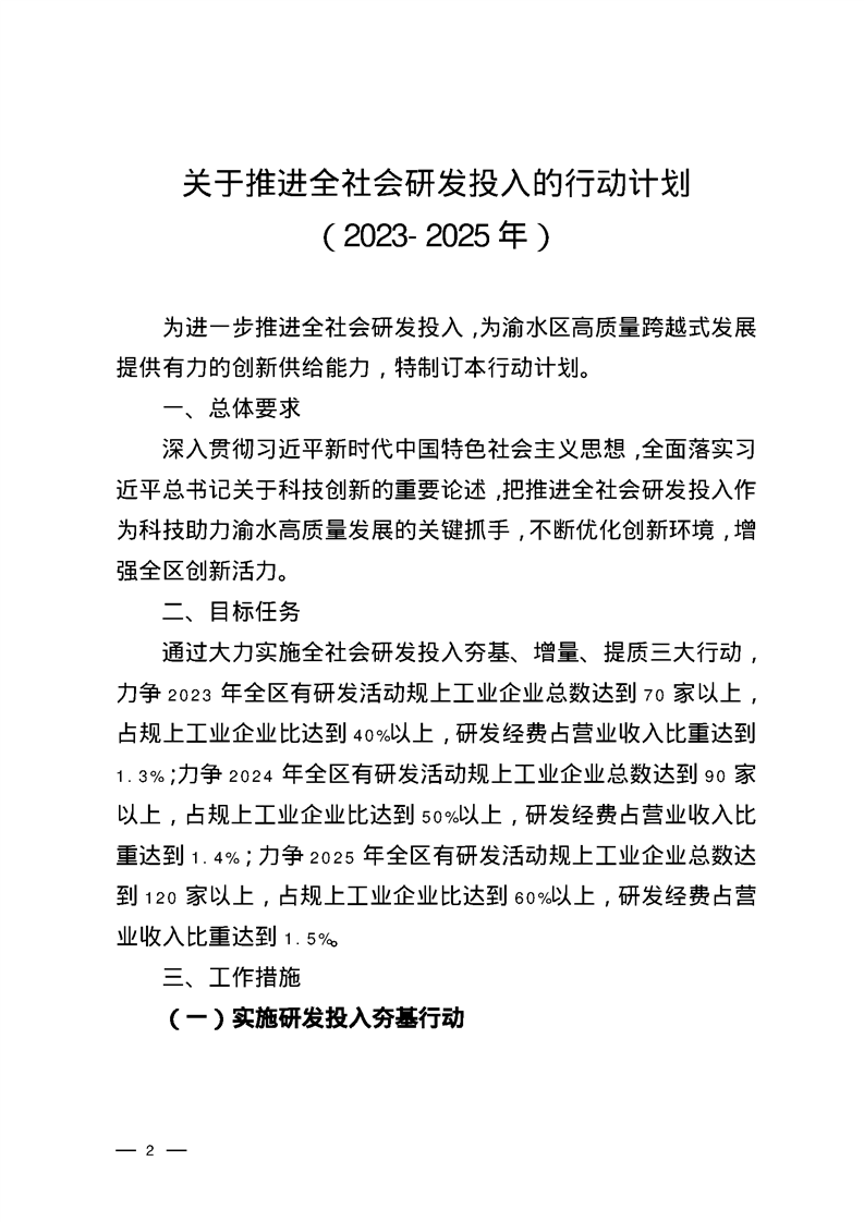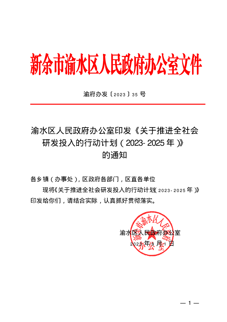 渝府辦發(2023)35號 渝水區人民政府辦公室印發《關于推進全社會研發投入的行動計劃(2023-2025年)》的通知