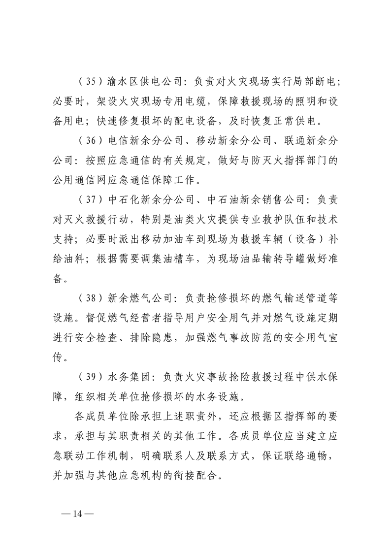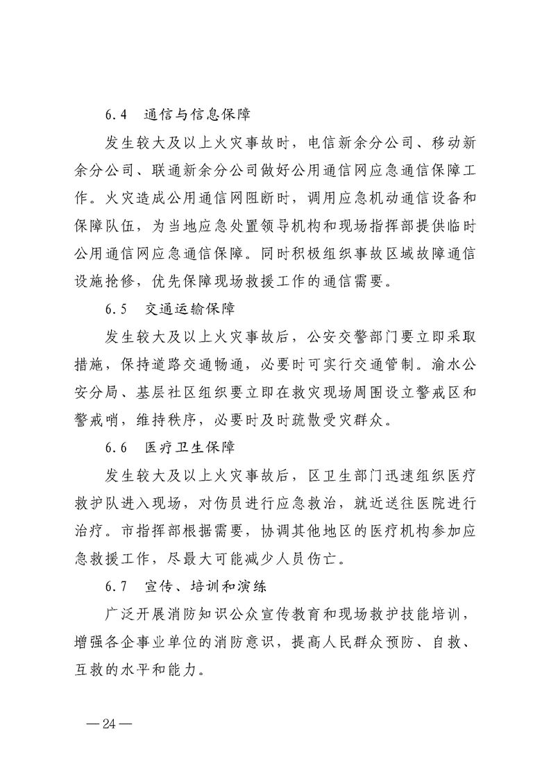 渝府辦發【2024】10號 渝水區人民政府辦公室關于印發《渝水區較大及以上火災事故應急預案》的通知