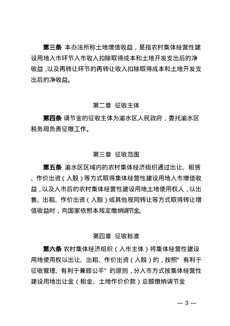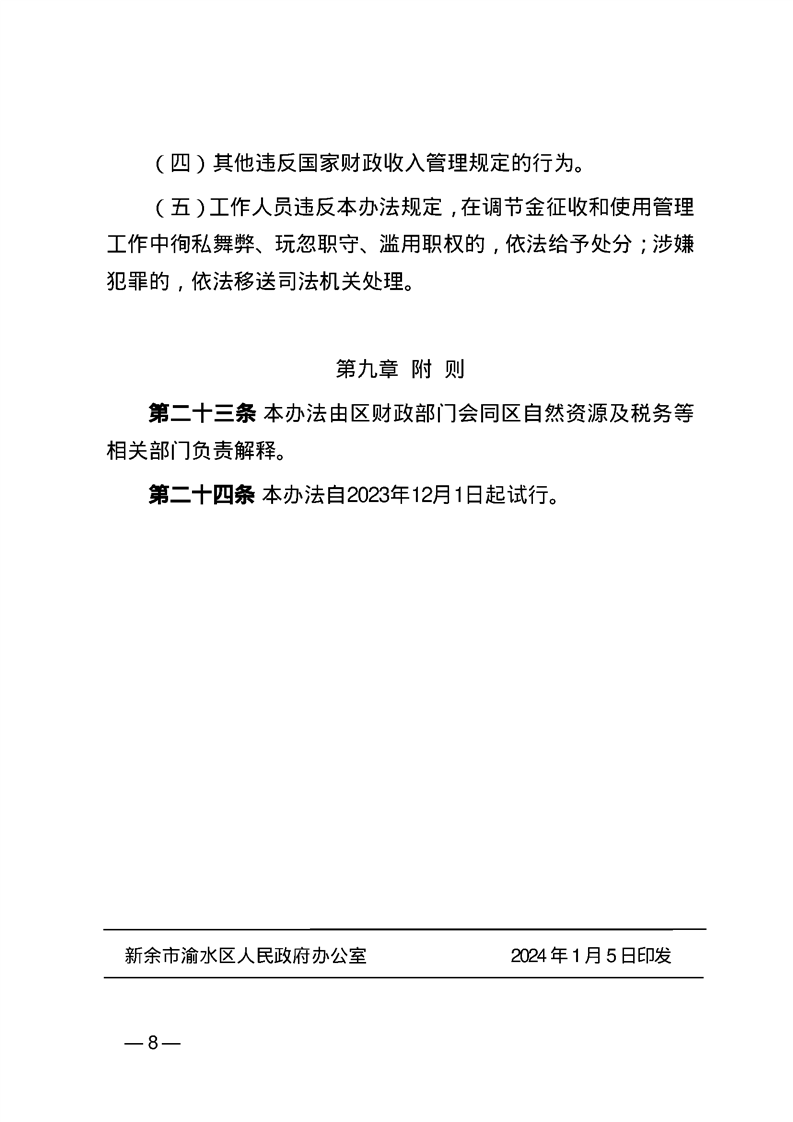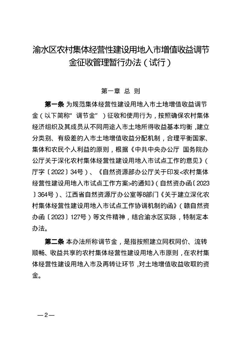 渝府辦發【2024】1號 渝水區人民政府辦公室關于印發《渝水區農村集體經營性建設用地入市增值收益調節金征收管理暫行辦法(試行)》的通知