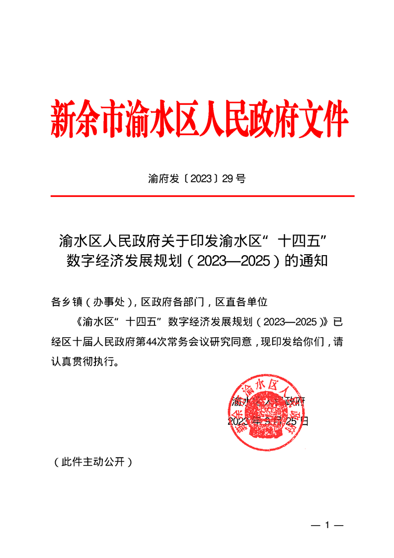 渝府發[2023] 29號 渝水區人民政府關于印發渝水區“十四五” 數字經濟發展規劃(2023—2025)的通知