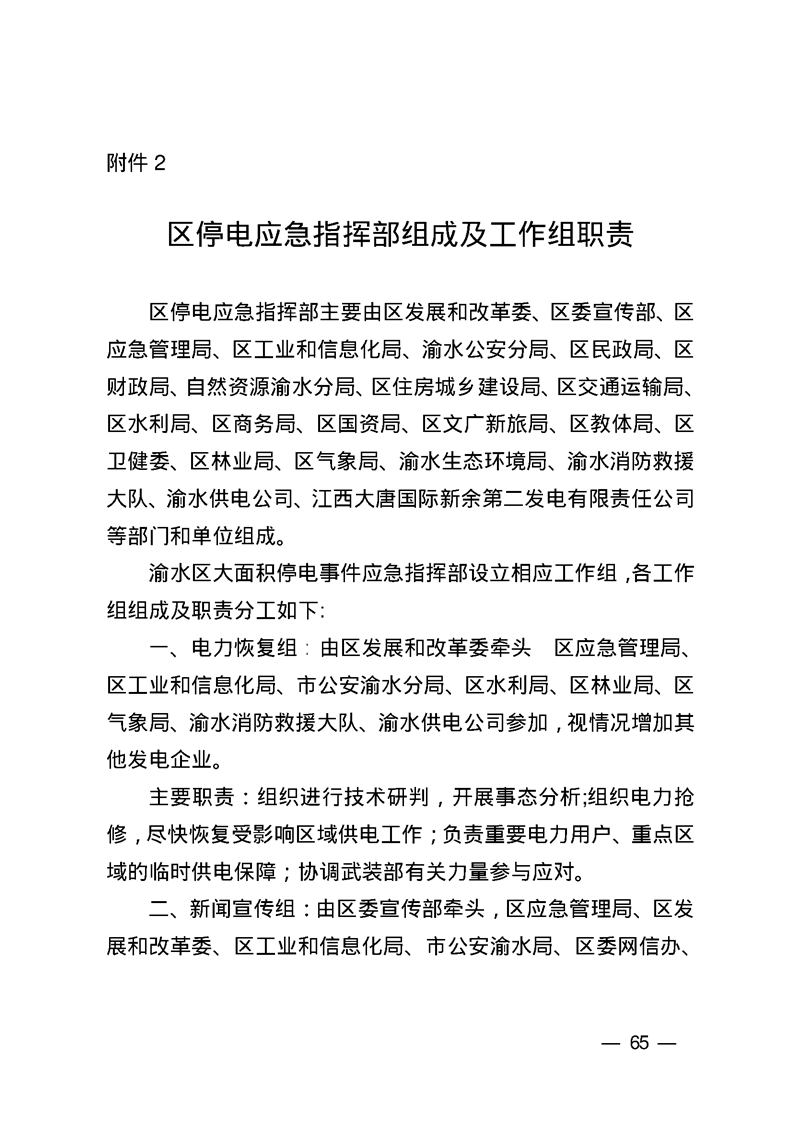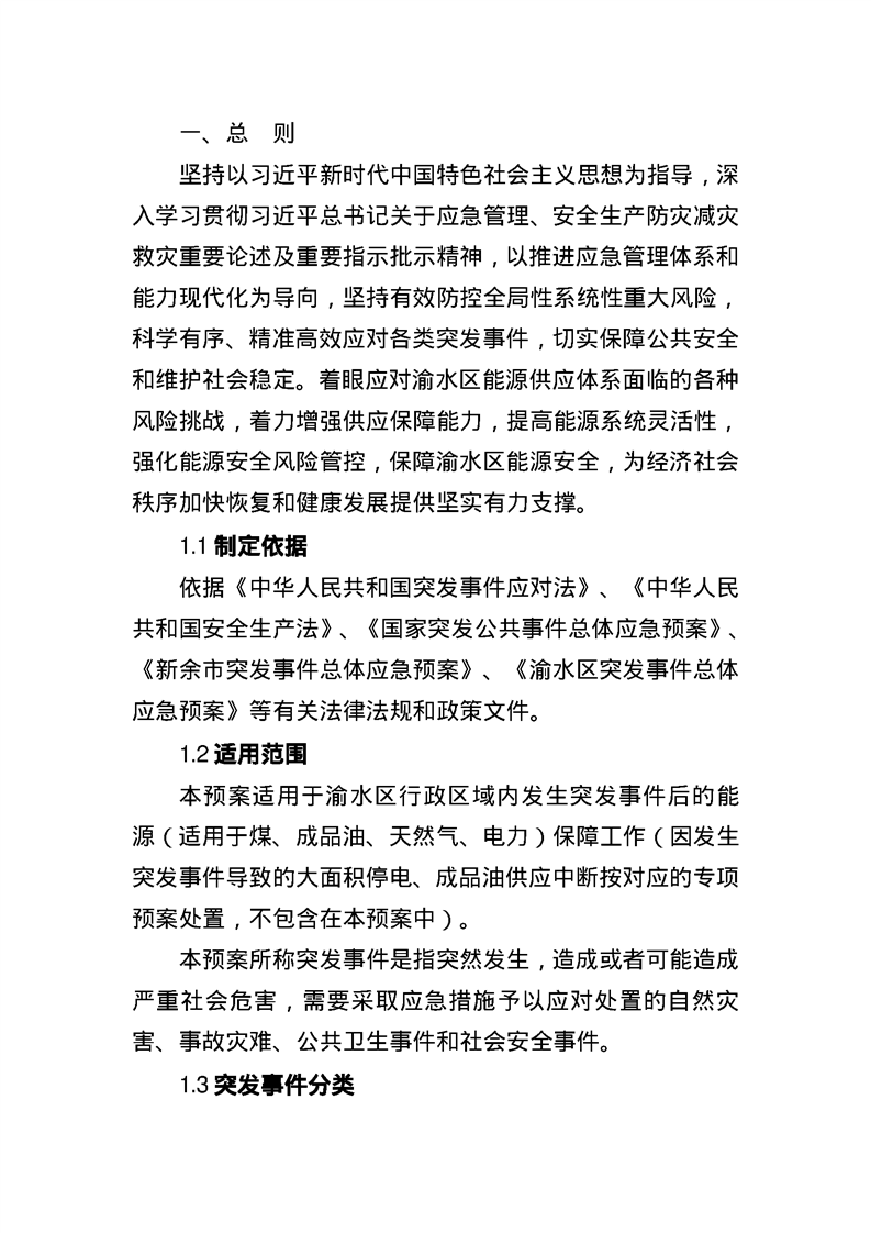 渝府辦發【2024】4號 渝水區人民政府辦公室關于印發《渝水區突發事件能源保障應急預案》等3個專項應急預案的通知