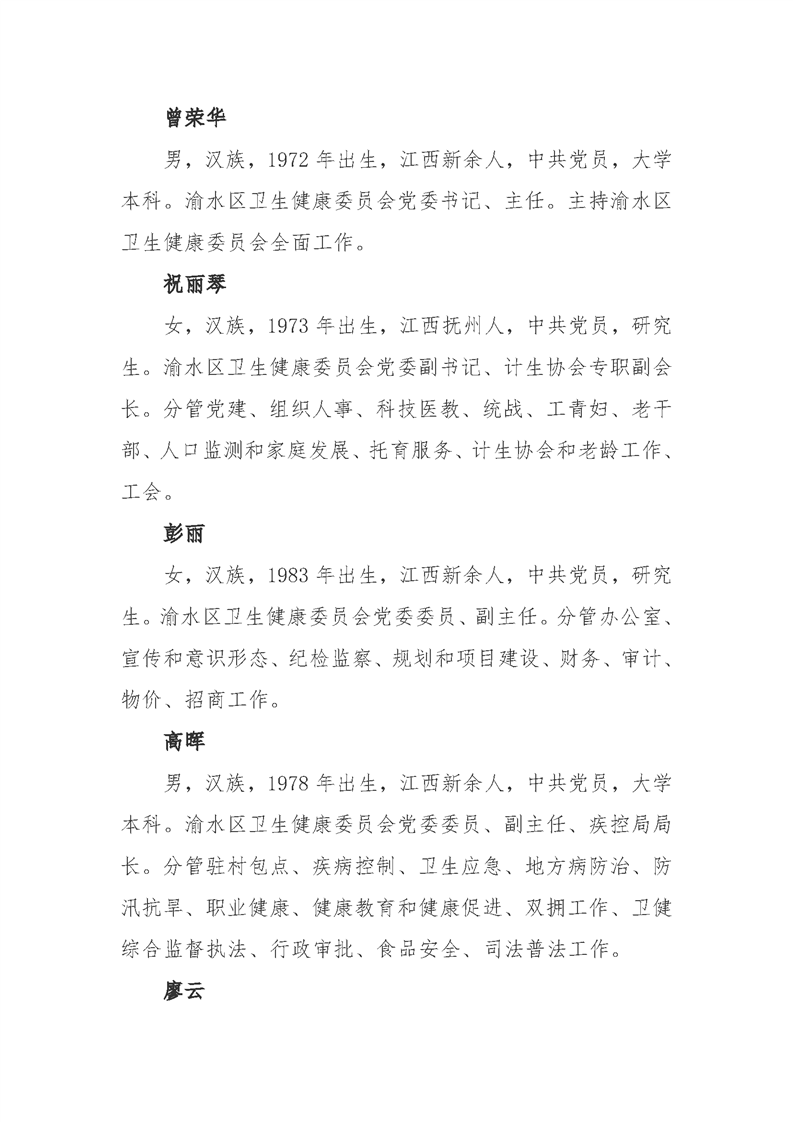 渝水區衛生健康委員會領導信息