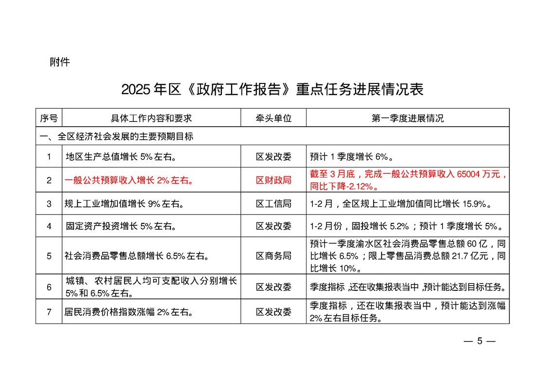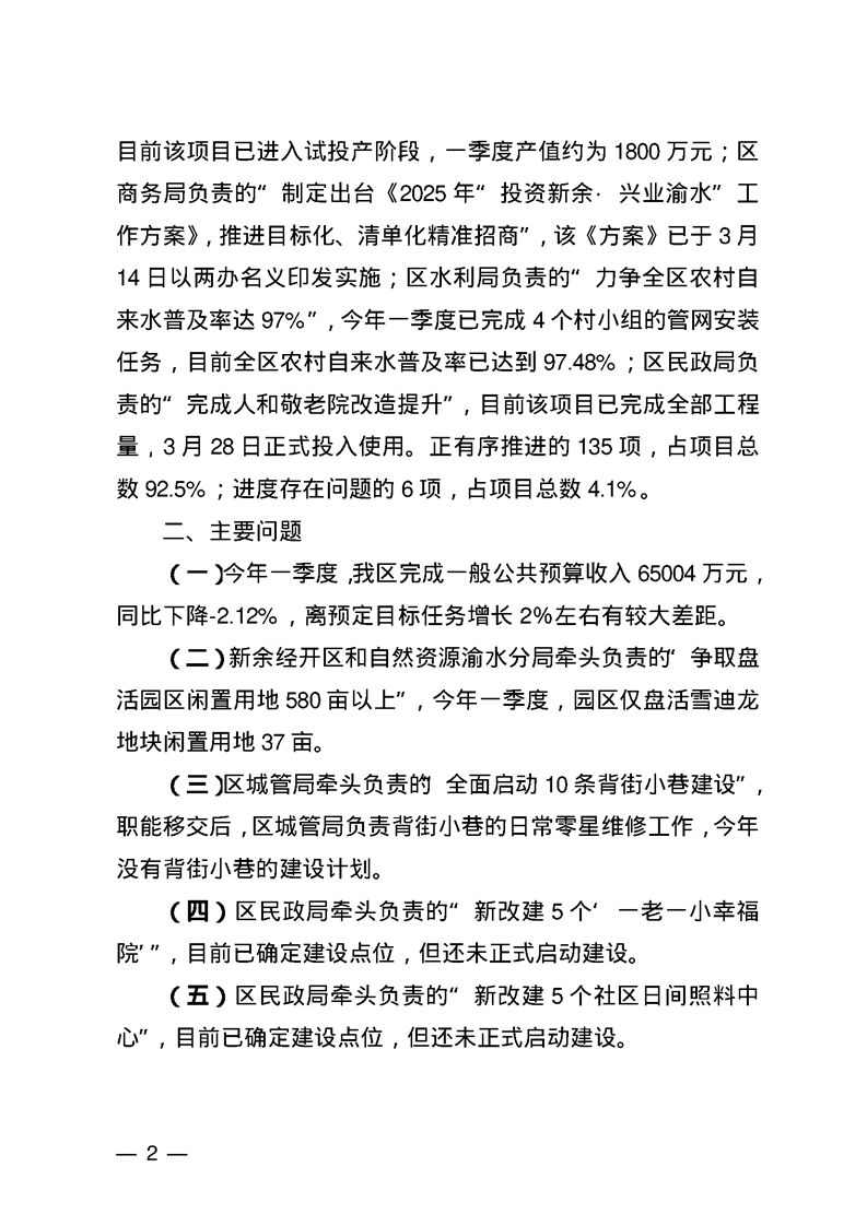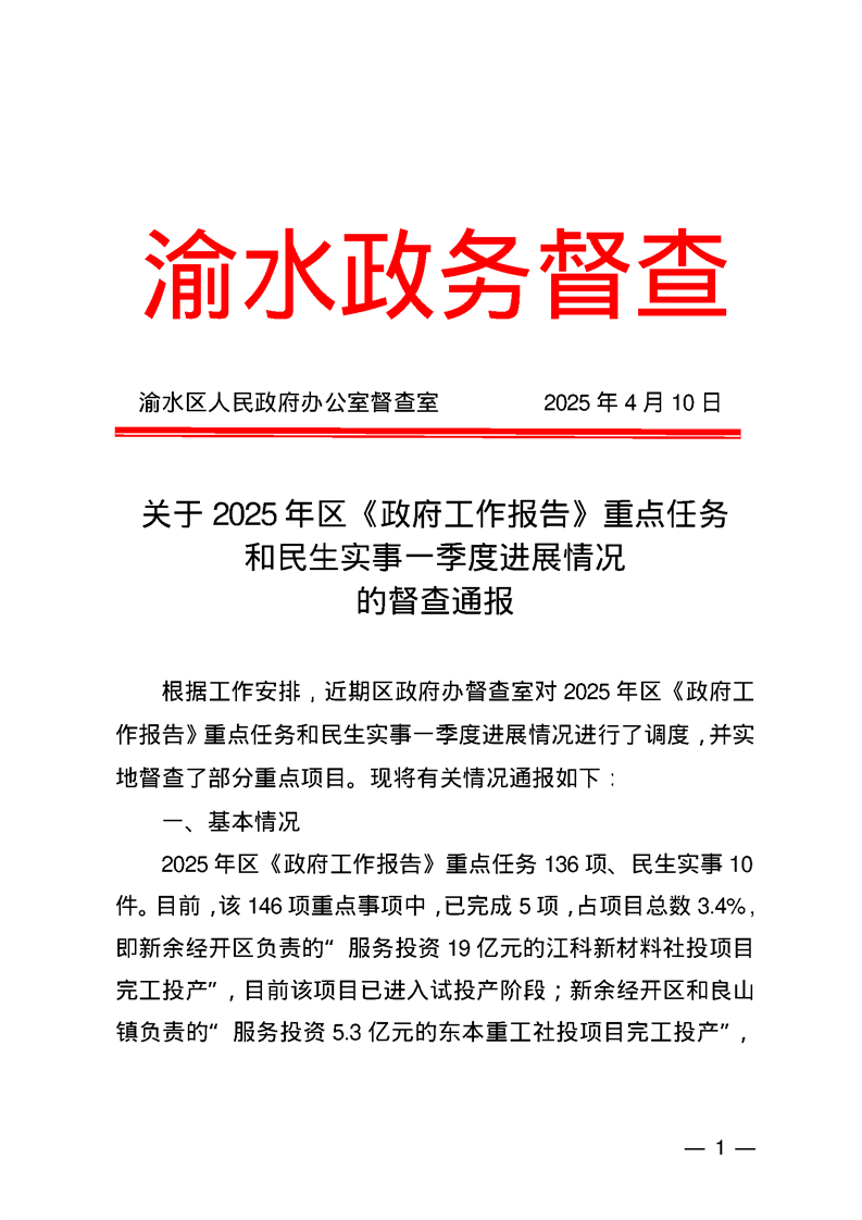關于2025年區(qū)《政府工作報告》重點任務和民生實事一季度進展情況的督查通報