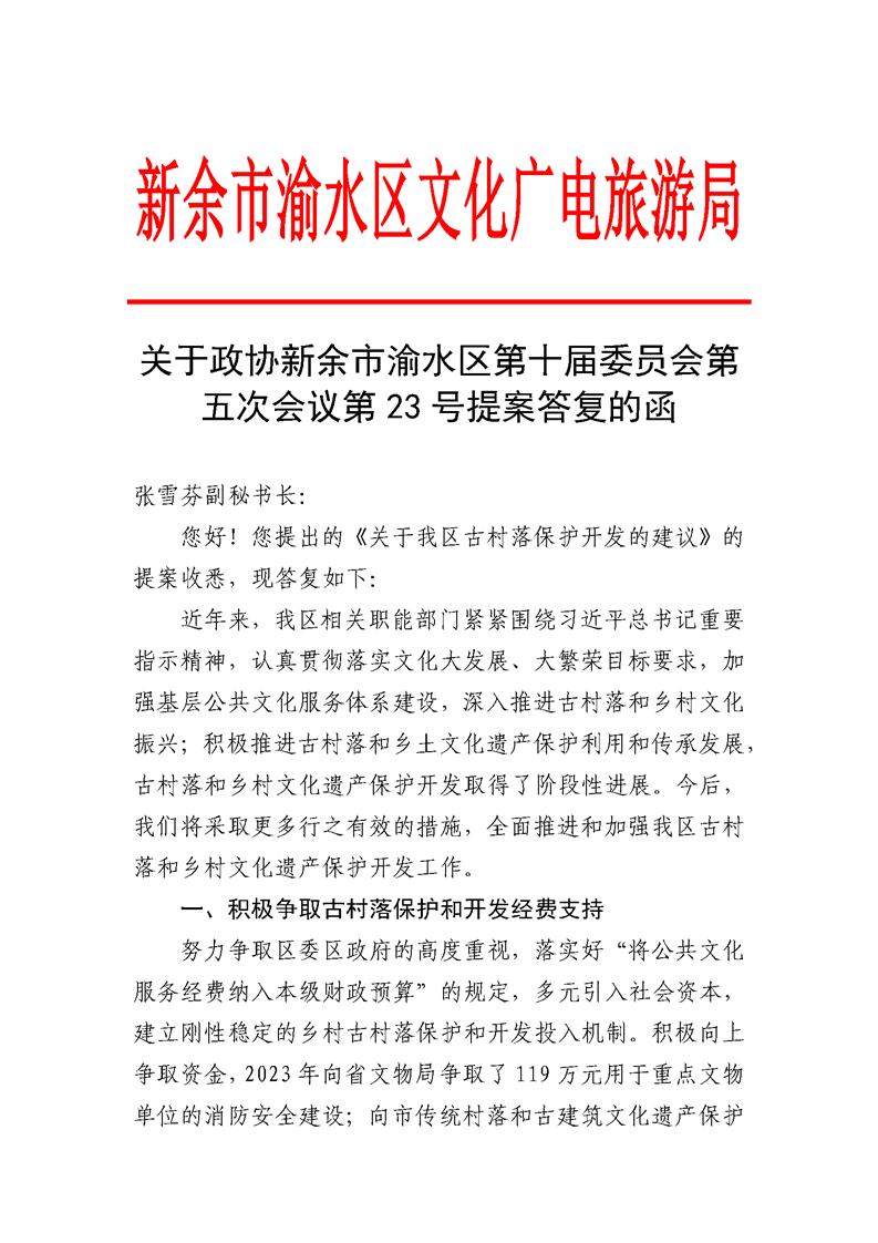 關于政協新余市渝水區第十屆委員會第五次會議第23號提案答復的函