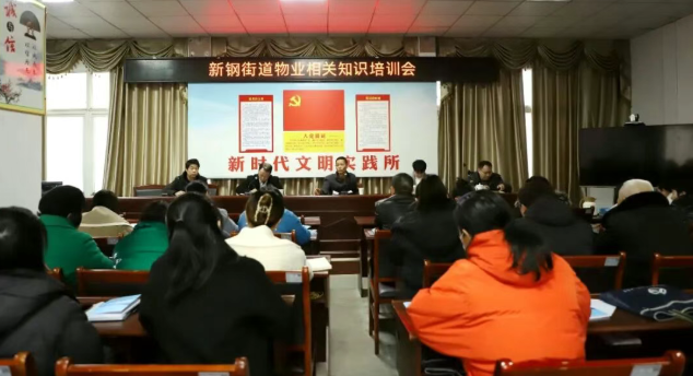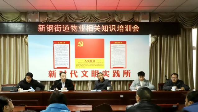近期,新鋼街道在街道四樓會議室召開了物業相關知識培訓會。街道黨工委委員劉國忠主持會議,街道物業崗位人員、各社區書記、社區物業崗位人員、業委會主任、小區物業經理共50余人參加。