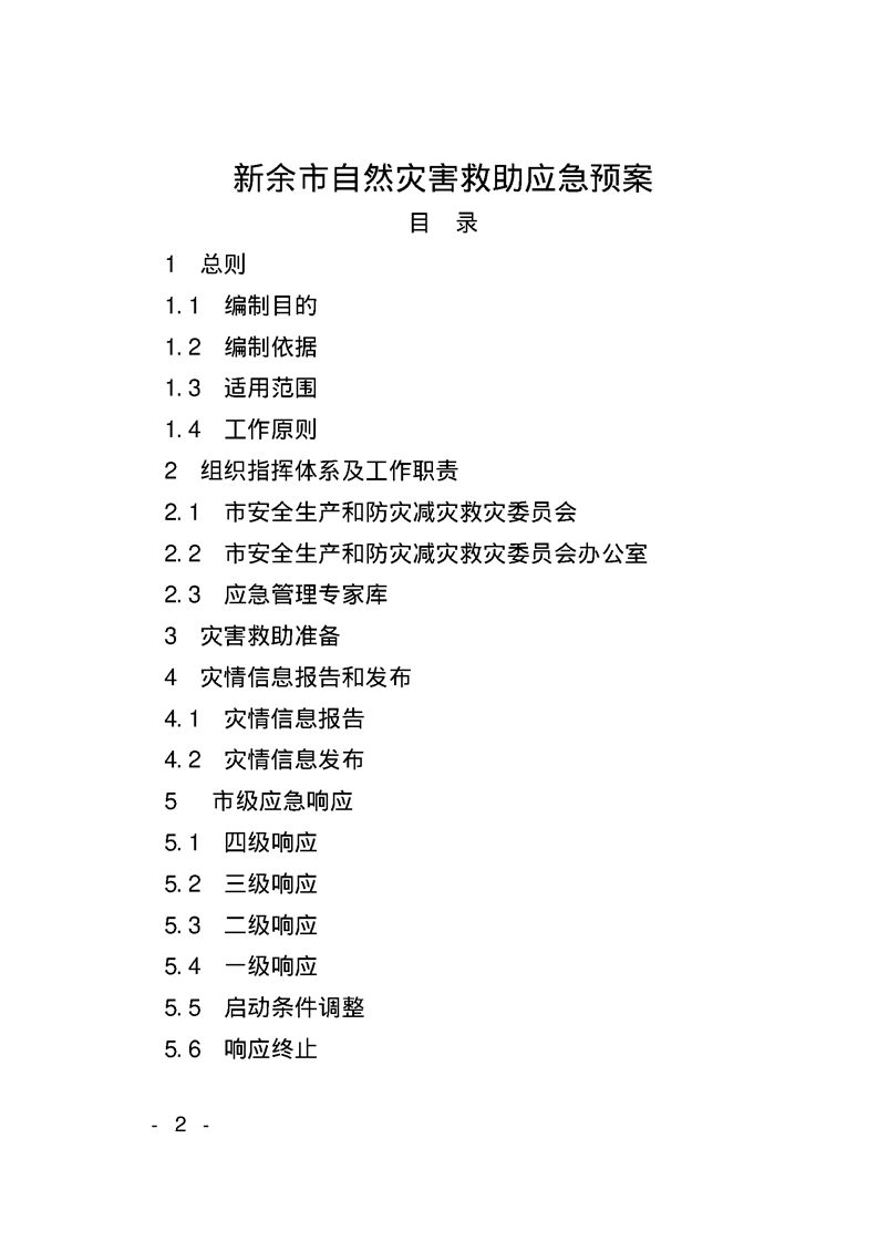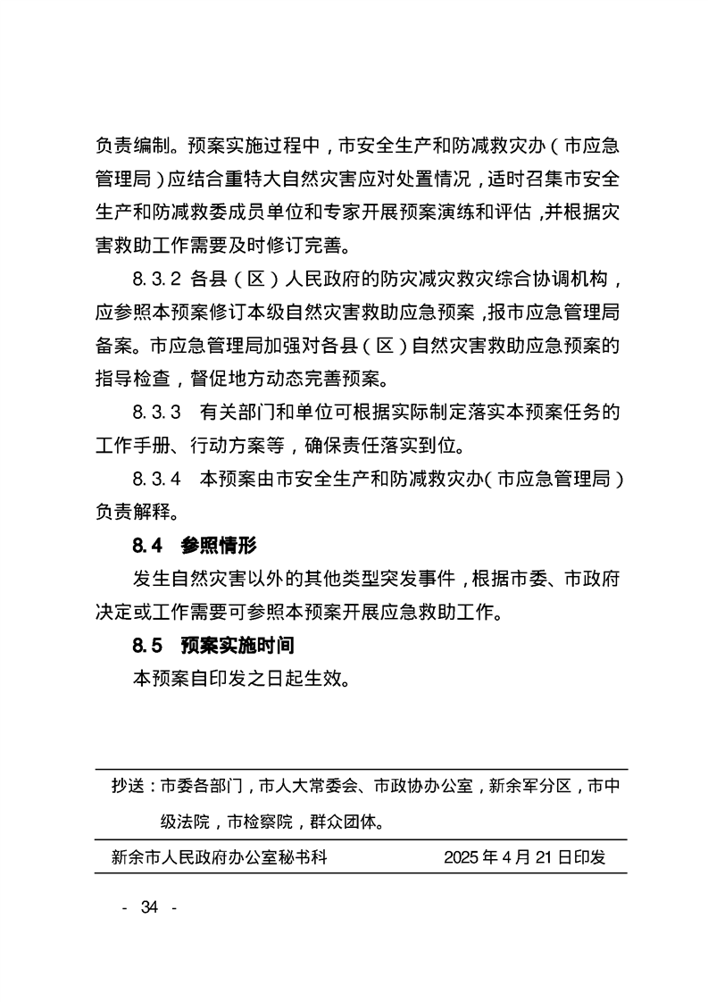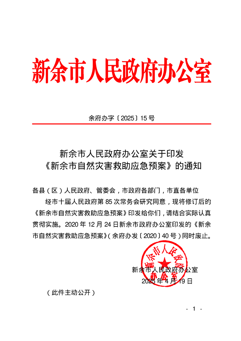 新余市人民政府辦公室關于印發《新余市自然災害救助應急預案》的通知