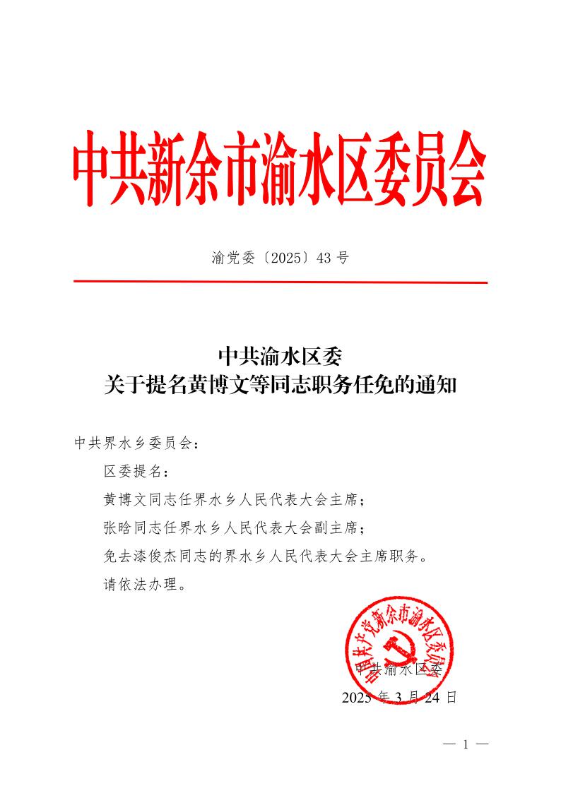 關(guān)于提名黃博文、張晗等同志職務(wù)任免的通知