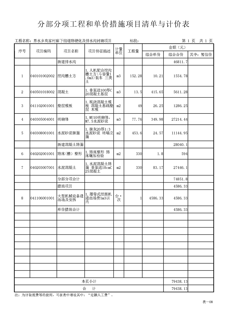 界水鄉(xiāng)高家村廟下組道路硬化及排水溝襯砌項(xiàng)目