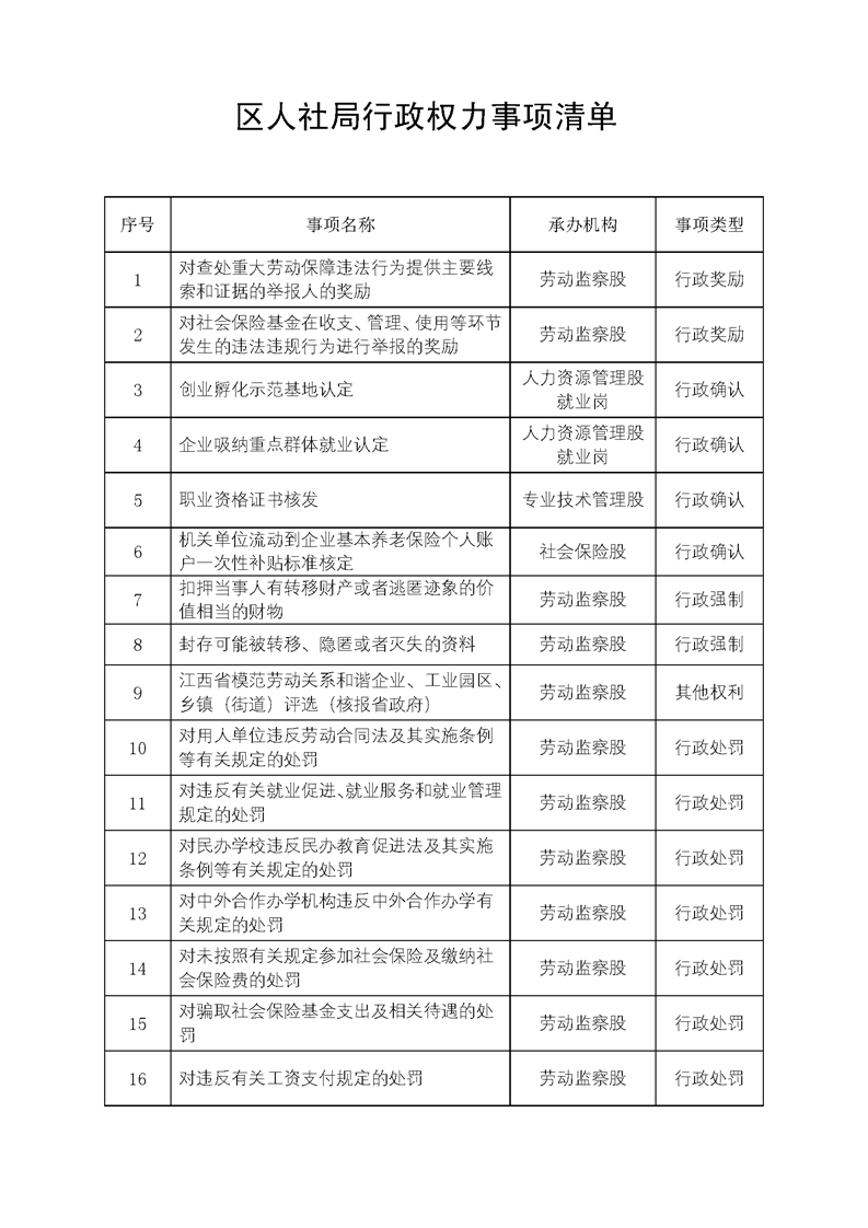 渝水區(qū)人社局行政權(quán)力事項(xiàng)清單