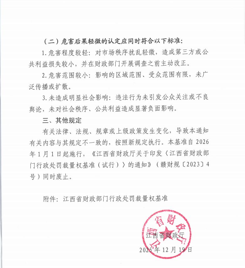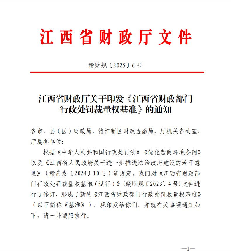贛財規6號江西省財政廳關于印發《江西省財政部門行政處罰裁量權基準》的通知