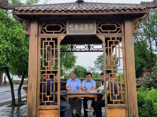 “今年村委雖新建了一個人大代表工作室,代表活動開展十分豐富,也比較規范。我們再在村里建代表議事亭的初衷,一來方便群眾反映問題,打通代表密切聯系群眾“最后一米”;二來趁著大家茶余飯后農忙完,都喜歡到亭子里坐坐,氛圍更融洽,說起事兒來更方便。”據統計,截止到6月底,在代表議事亭代表接待群眾200余人次,通過政策宣傳、釋疑解惑,化解思想疙瘩20多起,為民辦實事16件,收集意見建議20件,已辦理落實12件。代表議事亭讓選民群眾話有地方說,人有地方找,事有地方辦,讓全過程人民民主在村級議事中得到了生動實踐。