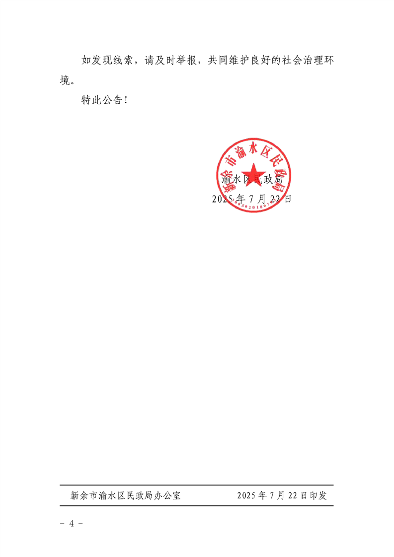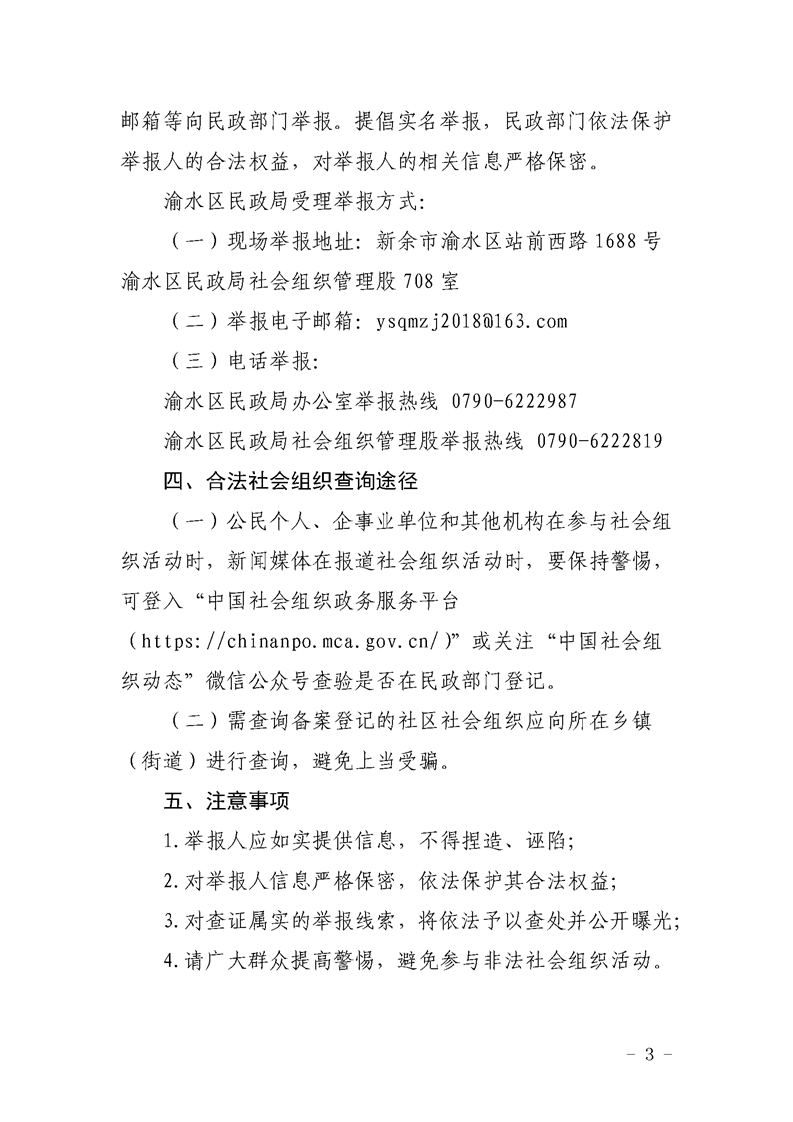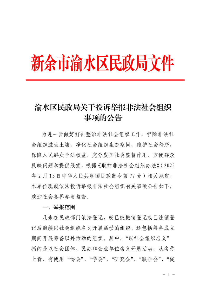 渝水區民政局關于投訴舉報非法社會組織事項的公告