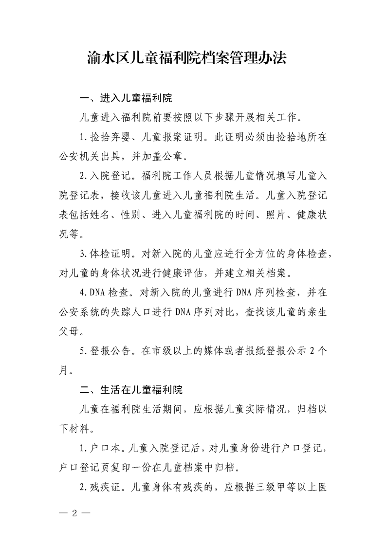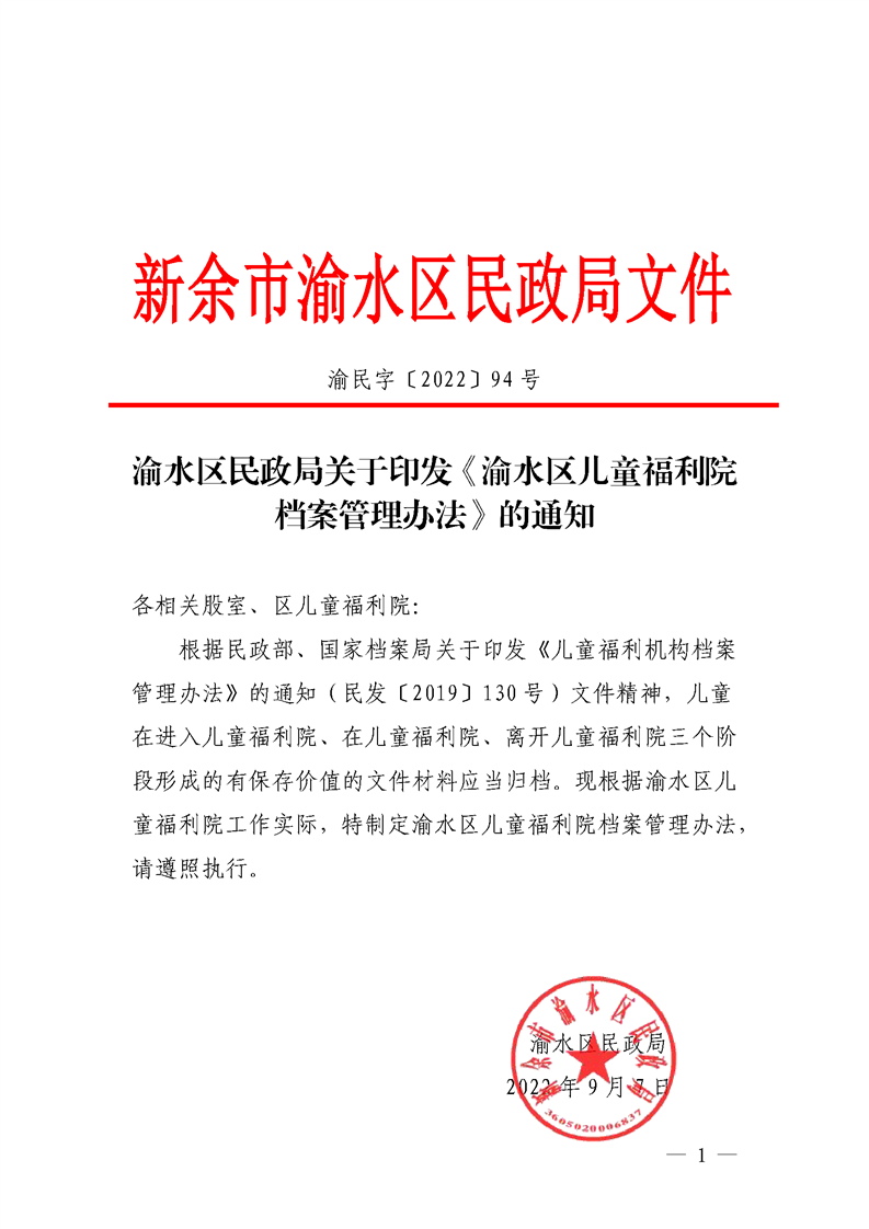 (有效)--渝民字【2022】94號 渝水區兒童福利院檔案管理辦法