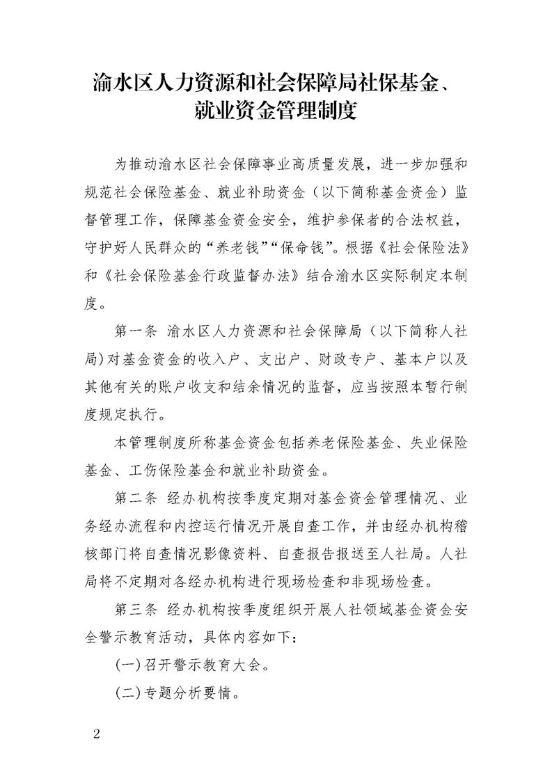 渝水區人力資源和社會保障局社保基金、就業資金管理制度