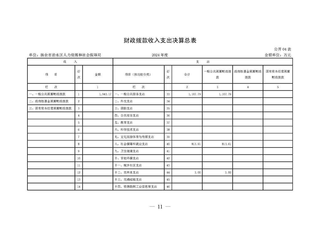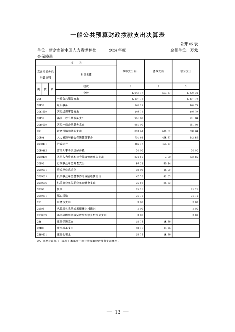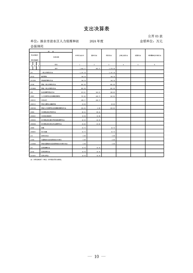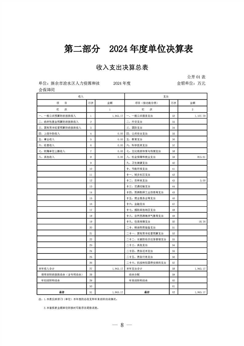 新余市渝水區人力資源和社會保障局2024年度單位決算