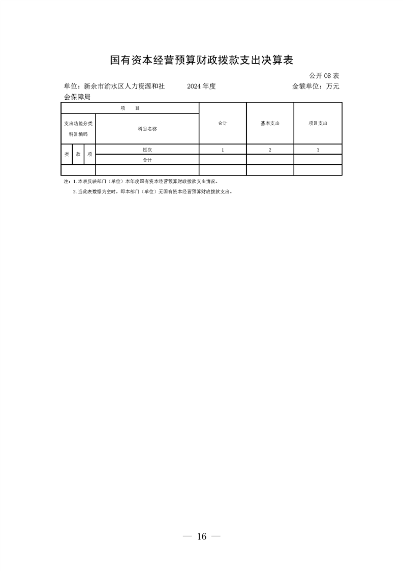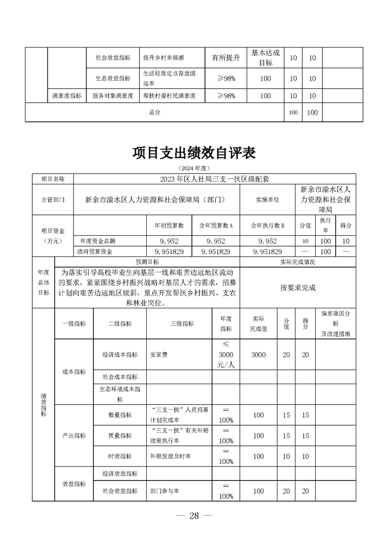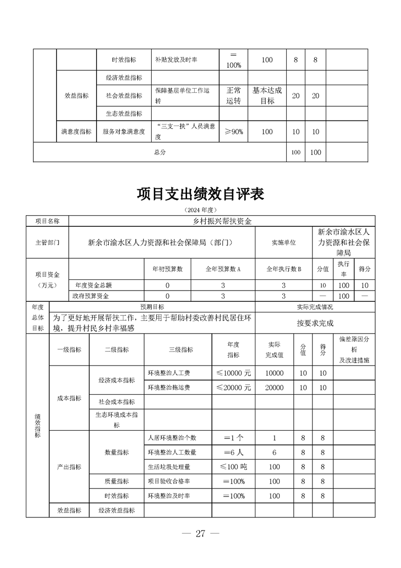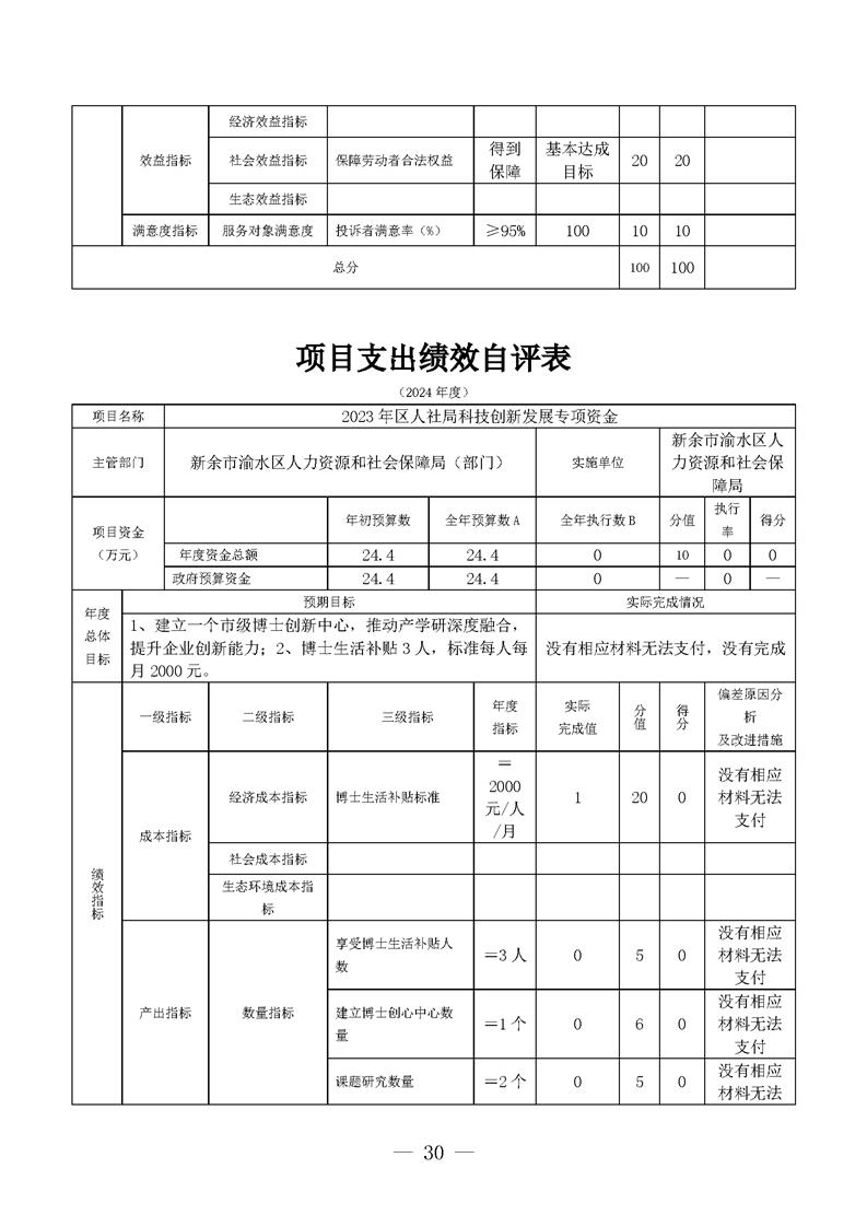 新余市渝水區人力資源和社會保障局2024年度單位決算