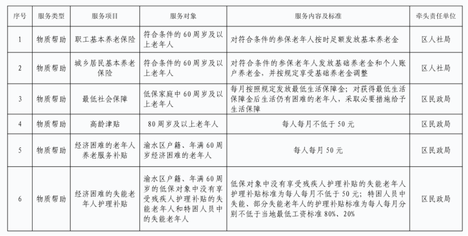 渝水區(qū)基本養(yǎng)老服務(wù)清單