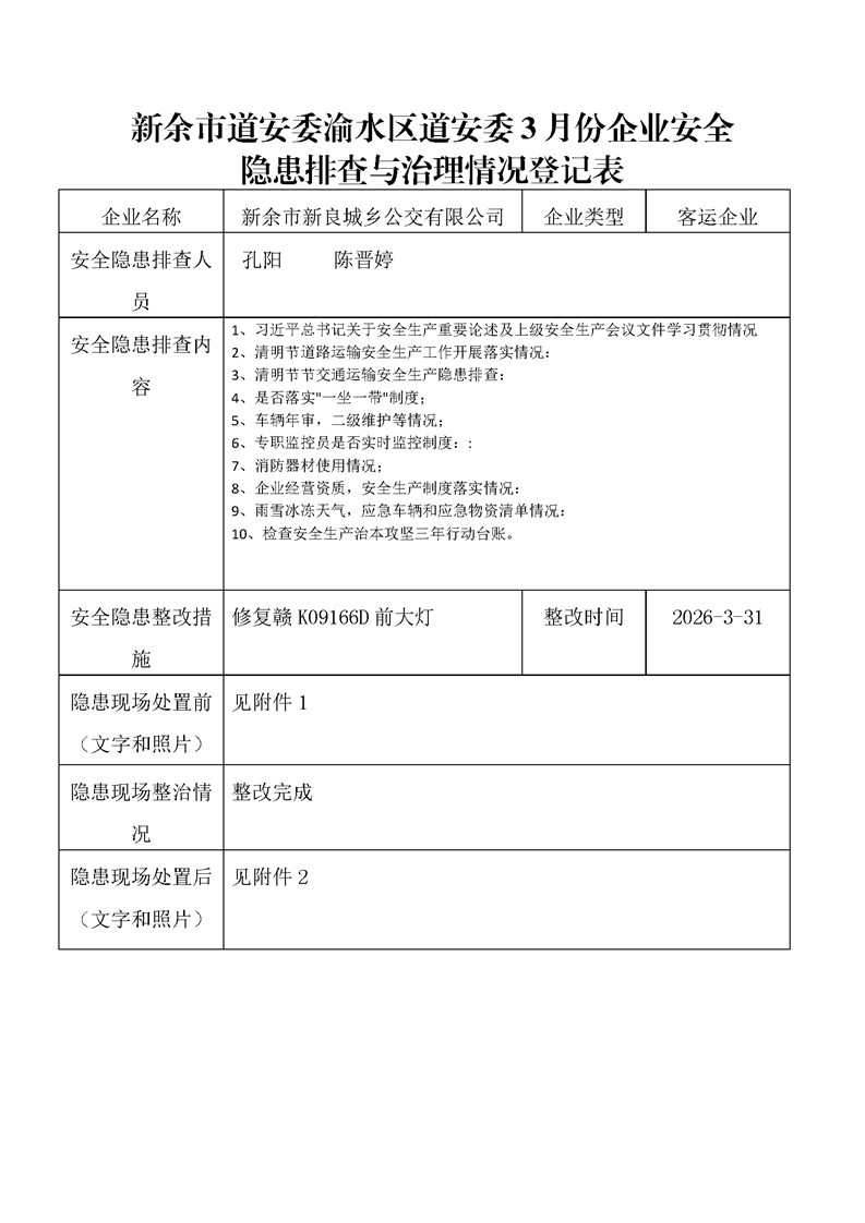 2026年3月道路運輸監督檢查結果信息-新良城鄉公交公司