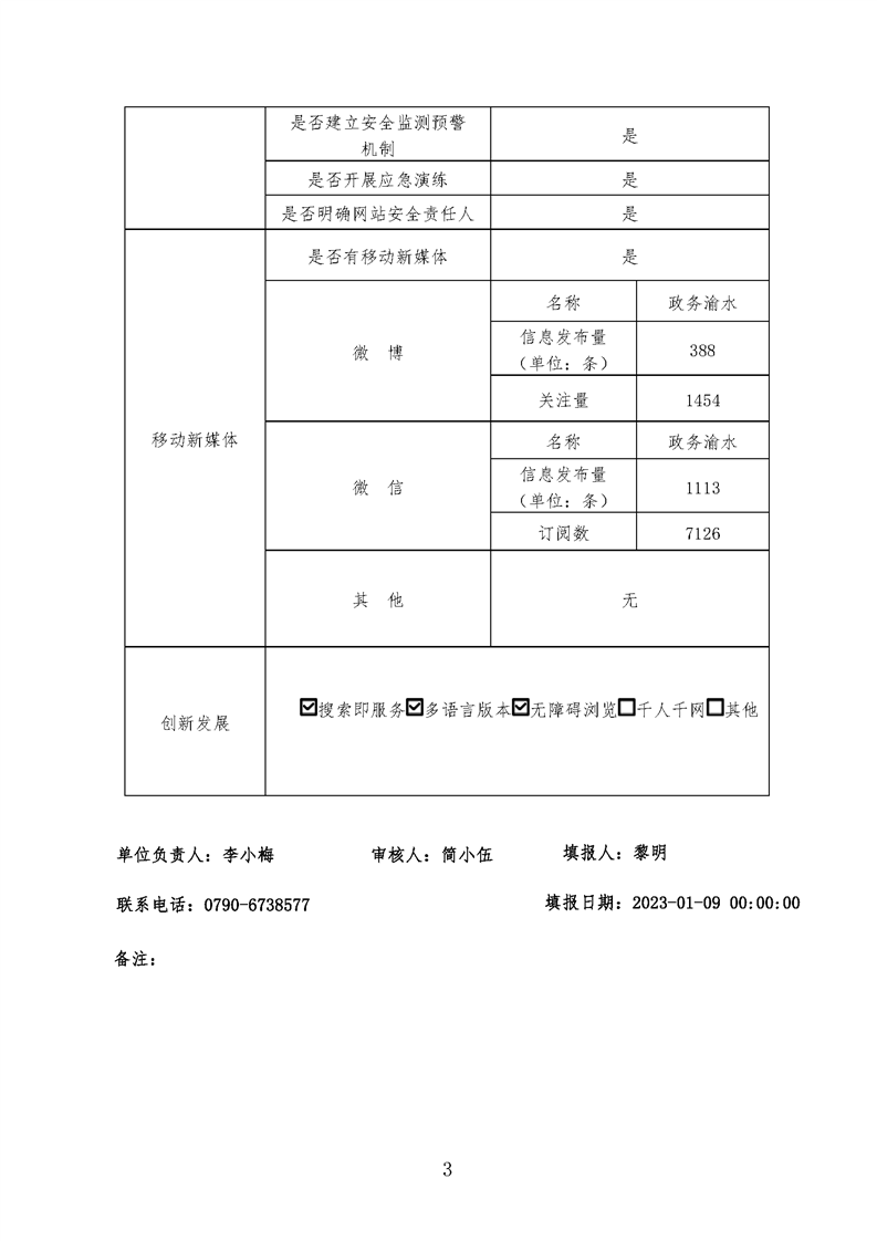 2022年江西新余市渝水區政府網站年報