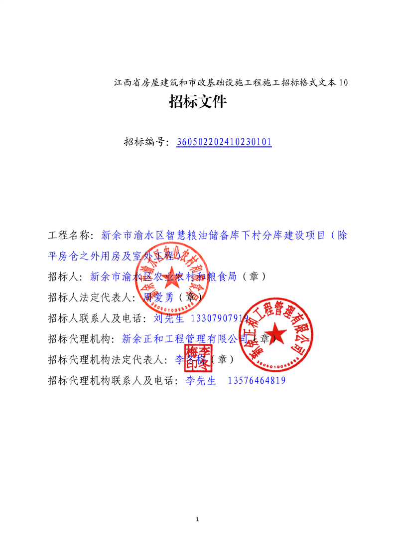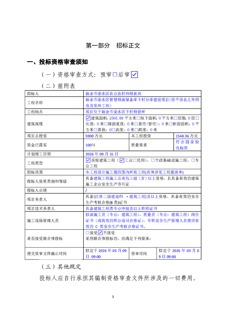 新余市渝水區(qū)智慧糧油儲(chǔ)備庫(kù)下村分庫(kù)建設(shè)項(xiàng)目(除平房倉(cāng)之外用房及室外工程)招標(biāo)文件預(yù)公示