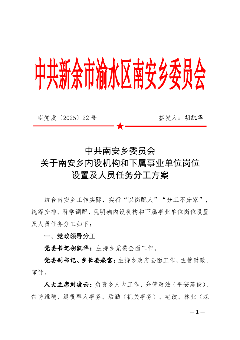 22號關于南安鄉內設機構和下屬事業單位崗位設置及人員任務分工方案