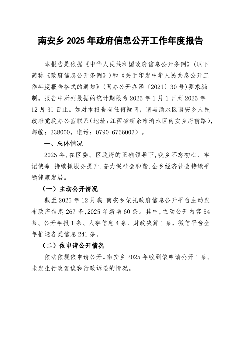 信息索取號: 3605020001-2026-02010 發布日期: 2026-01-28 責任部門: 渝水區南安鄉人民政府