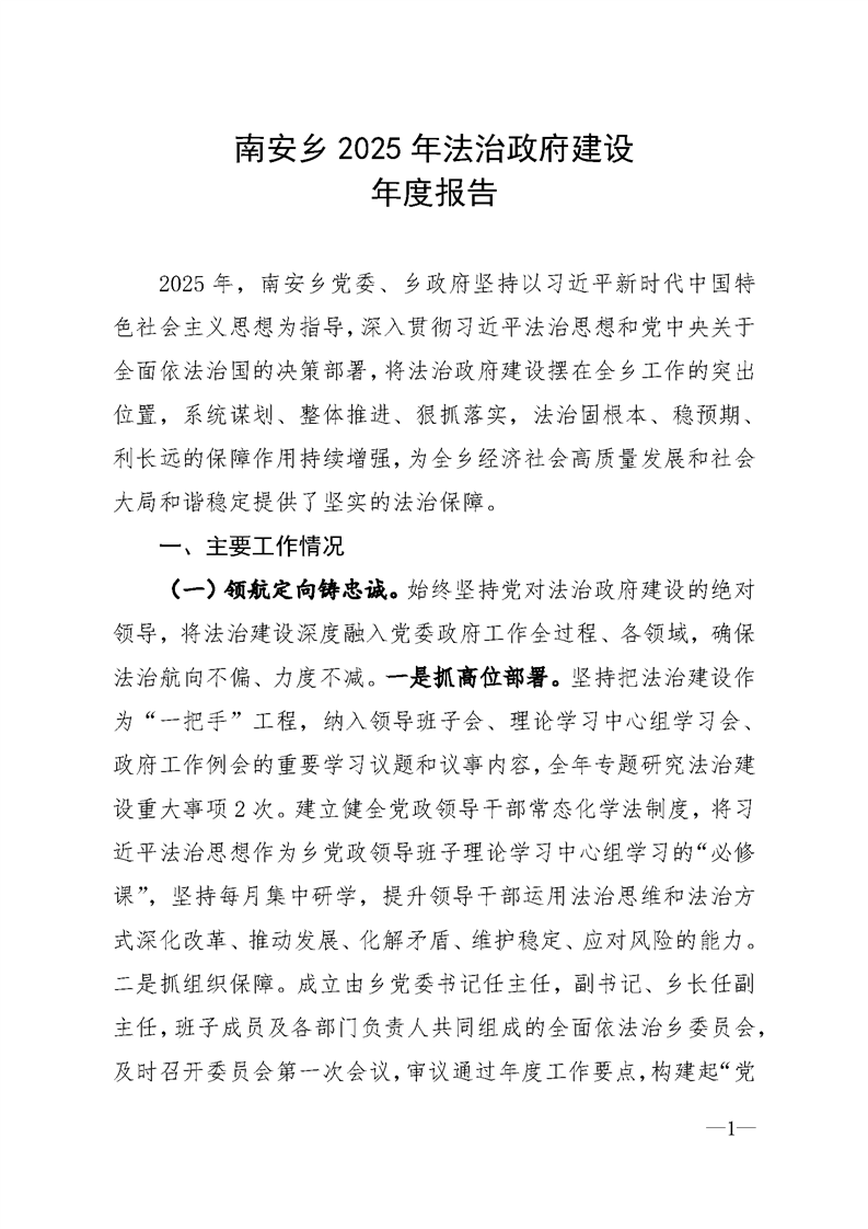 您當前所在位置: 首頁>信息公開>部門信息公開目錄>南安鄉>其他法定公開信息>法治政府建設年度報告