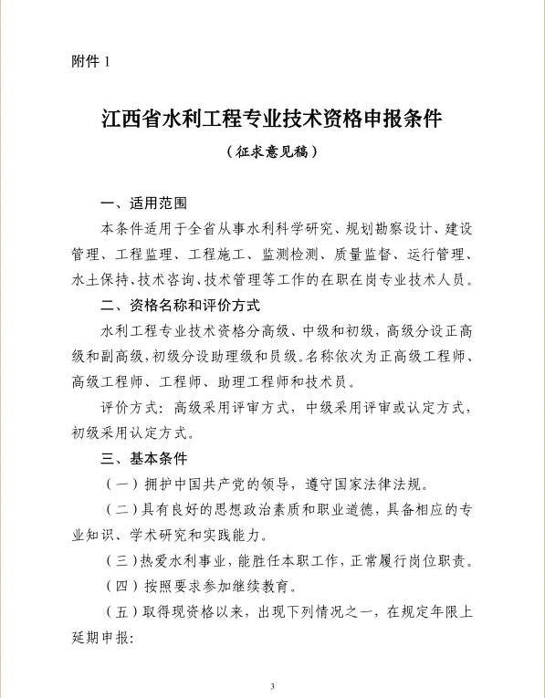 關(guān)于征求《江西省水利工程專業(yè)技術(shù)資格申報條件(征求意見稿)》和《江西省基層水利工程專業(yè)技術(shù)資格申報條件(征求意見稿)》意見的函