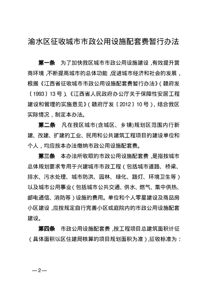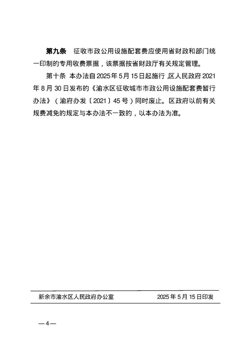 渝府辦發(fā)【2025】22號-渝水區(qū)人民政府辦公室關(guān)于印發(fā)渝水區(qū)征收城市市政公用設(shè)施配套費(fèi)暫行辦法的通知