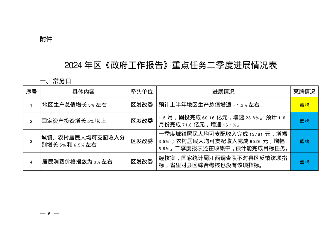 關(guān)于2024年區(qū)《政府工作報(bào)告》重點(diǎn)任務(wù)和民生實(shí)事二季度進(jìn)展情況的督查通報(bào)
