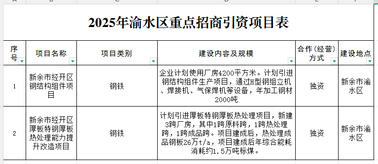 2025年渝水區(qū)重點(diǎn)招商引資項(xiàng)目表