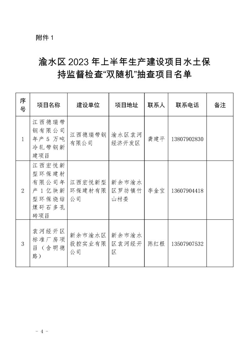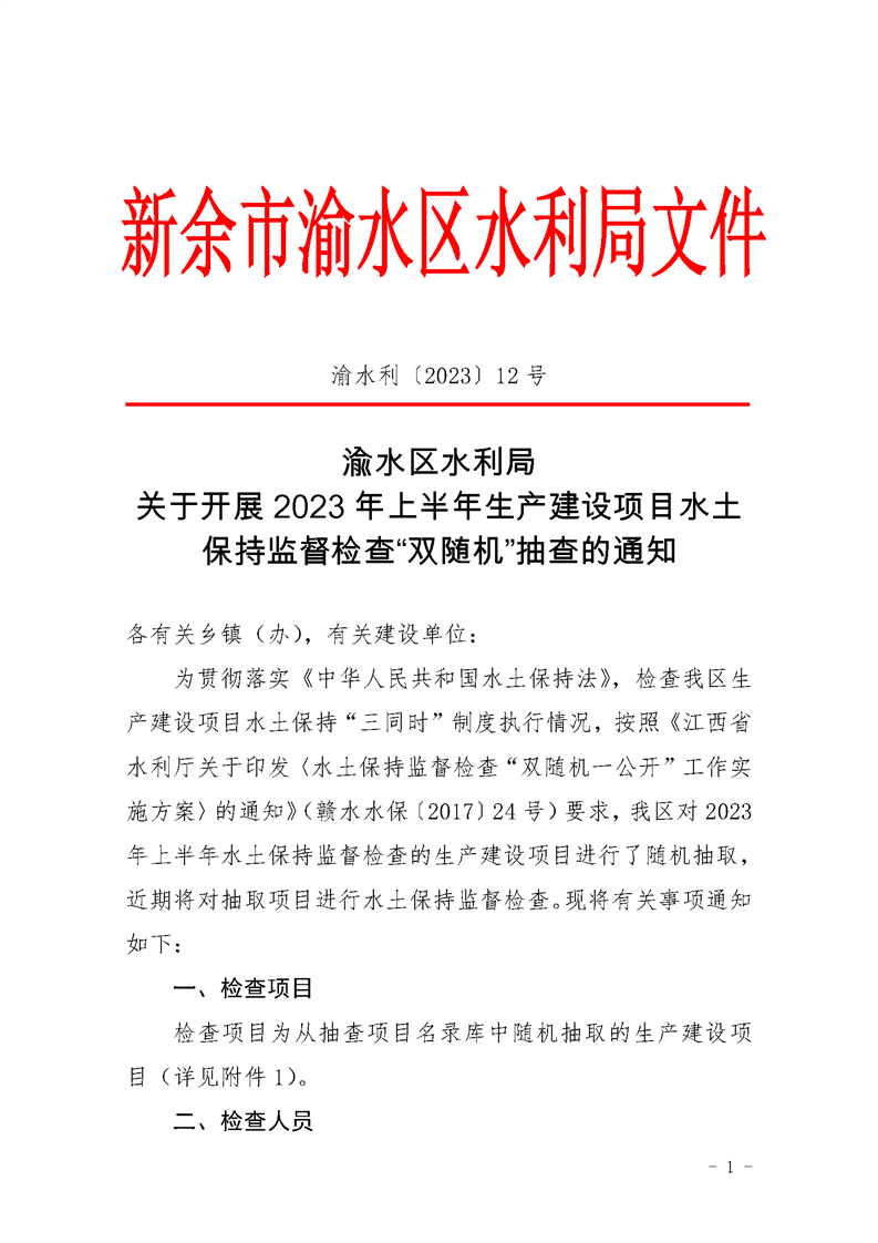 渝水區(qū)水利局關于開展2023年上半年生產(chǎn)建設項目水土保持監(jiān)督檢查“雙隨機”抽查的通知